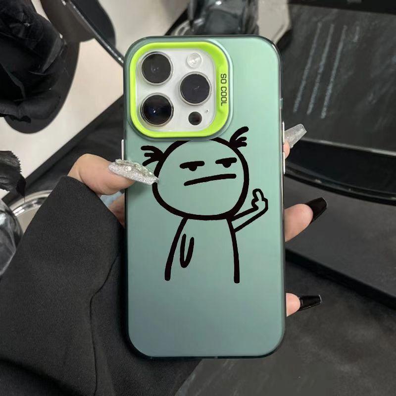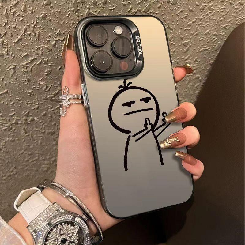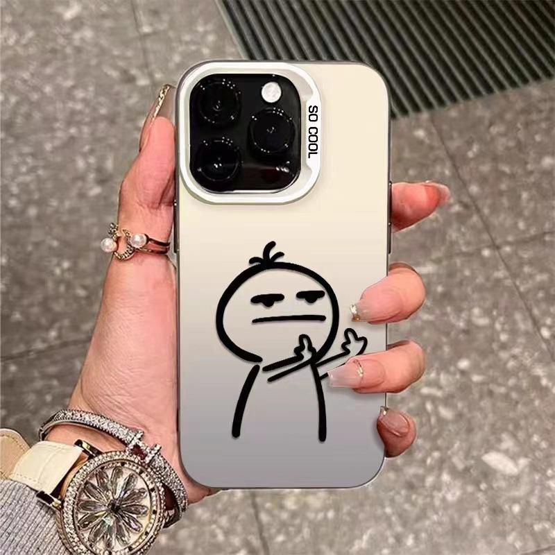 Dedo medio vertical personalizado es adecuado para Apple 15promax/16e creativo 14/13/12/11 color avanzado plata XR pequeño