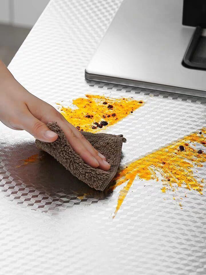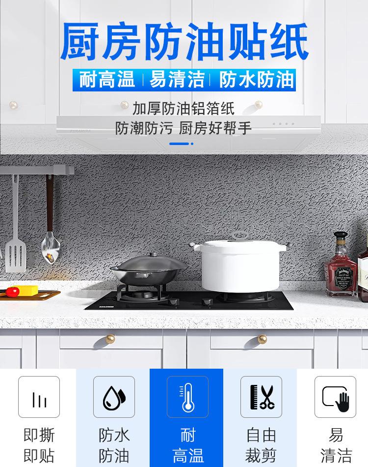 Adhesivos de Cocina a Prueba de Aceite Ignífugos Resistentes a Altas Temperaturas Impermeables a Prueba de Humedad Papel Tapiz Autoadhesivo Papel de Estaño Lámina de Aluminio