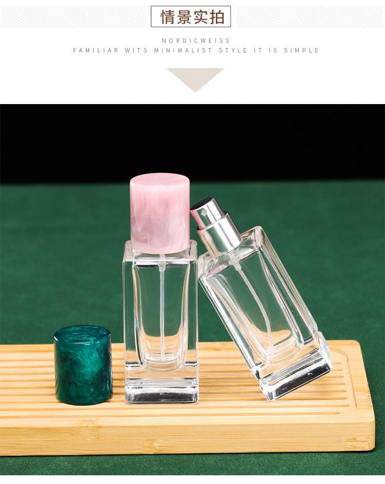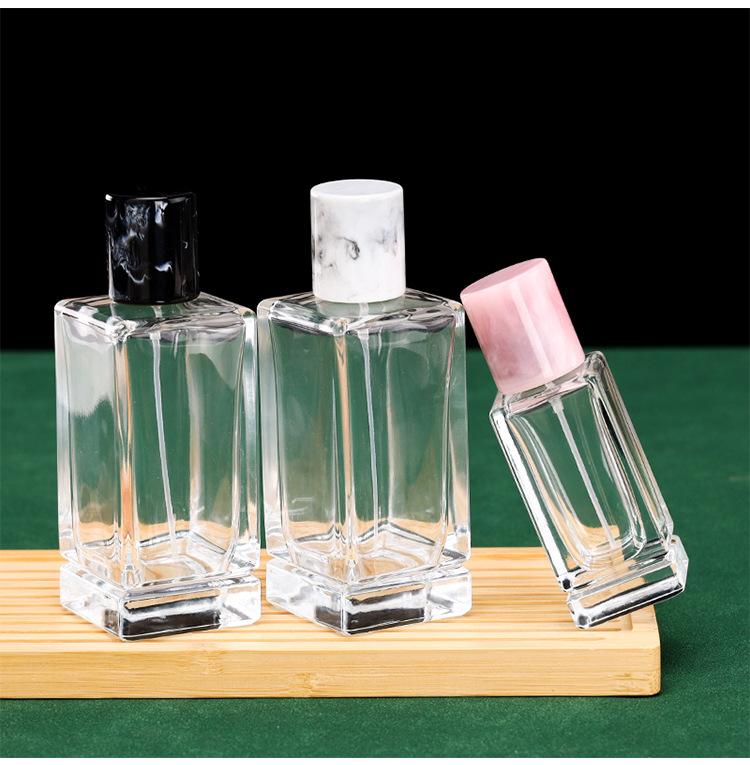 Frasco de perfume de bayoneta, frasco cuadrado de vidrio con atomizador, frasco transparente para tónico cosmético, frasco de muestra de perfume L