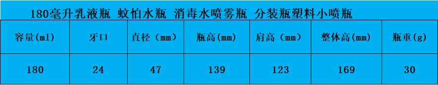 Parámetros: Diámetro 47mm Altura de la Botella 139mm Altura Botella+Pistola de Pulverización 169mm Calibre: 24mm