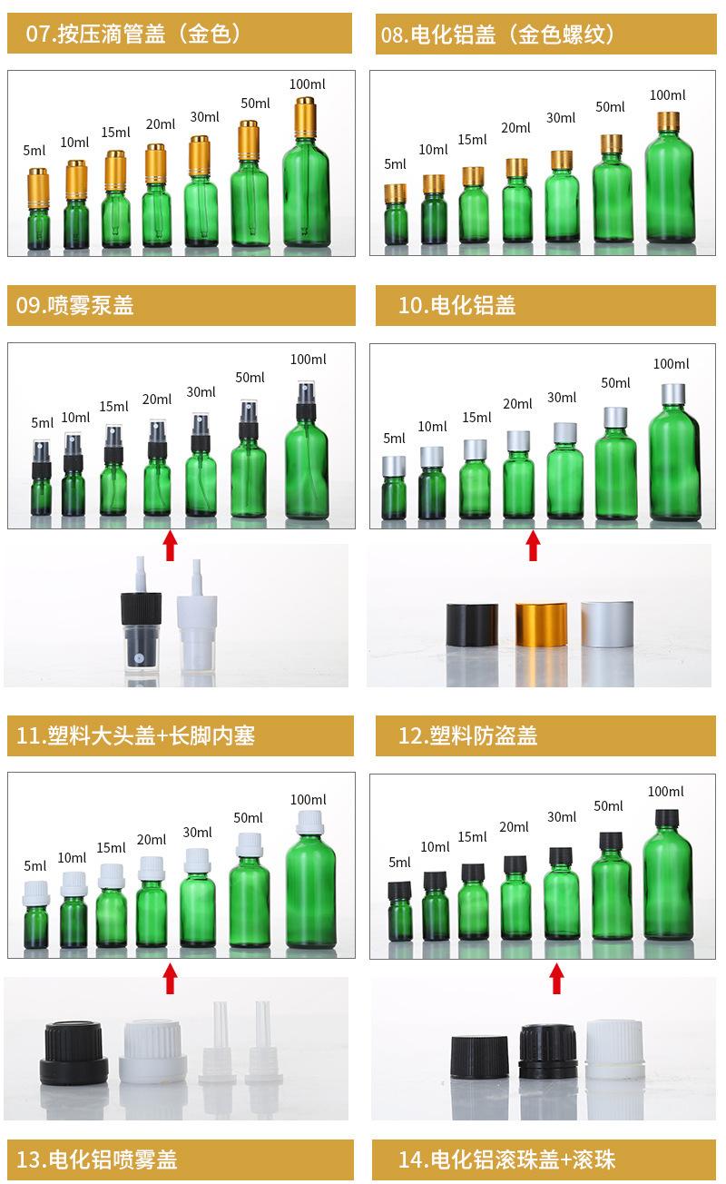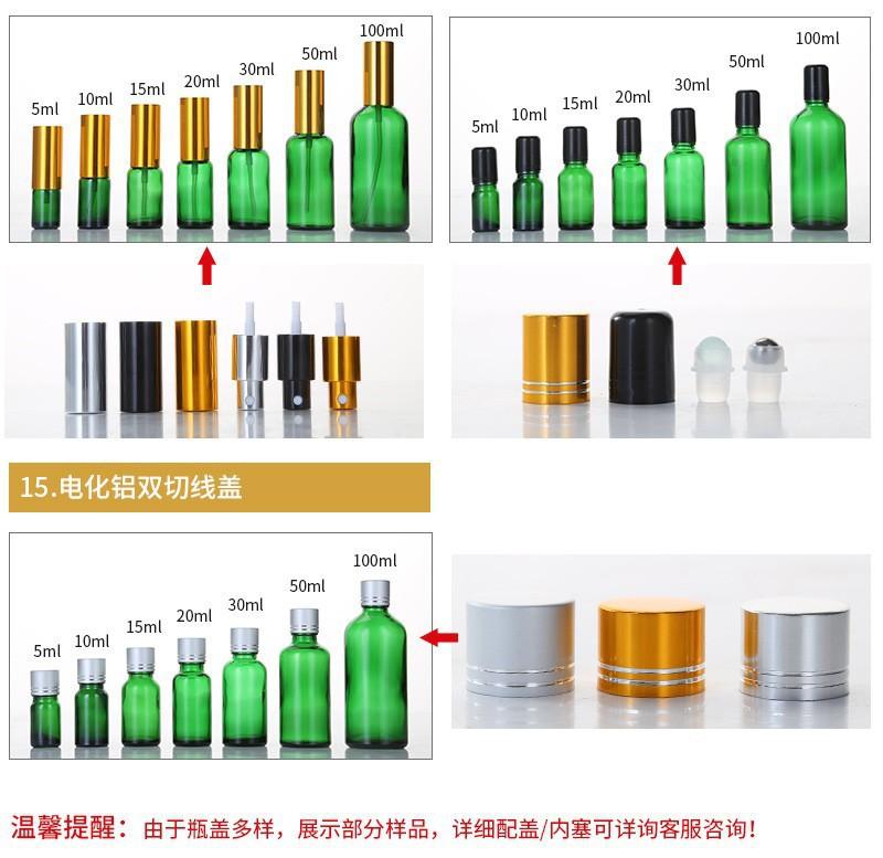 Botella de Vidrio Verde a Prueba de Luz para Aceites Esenciales Botella Cosmética Dispensadora de Esencia Loción Botella Vacía 5ml Muestra Portátil Botella para Cuidado de la Piel