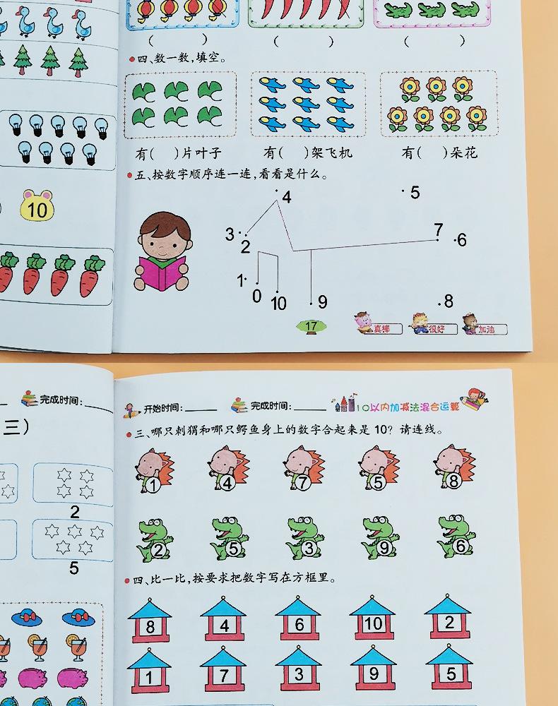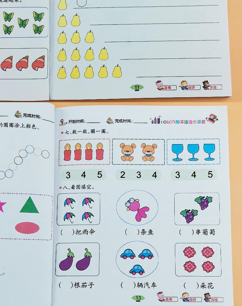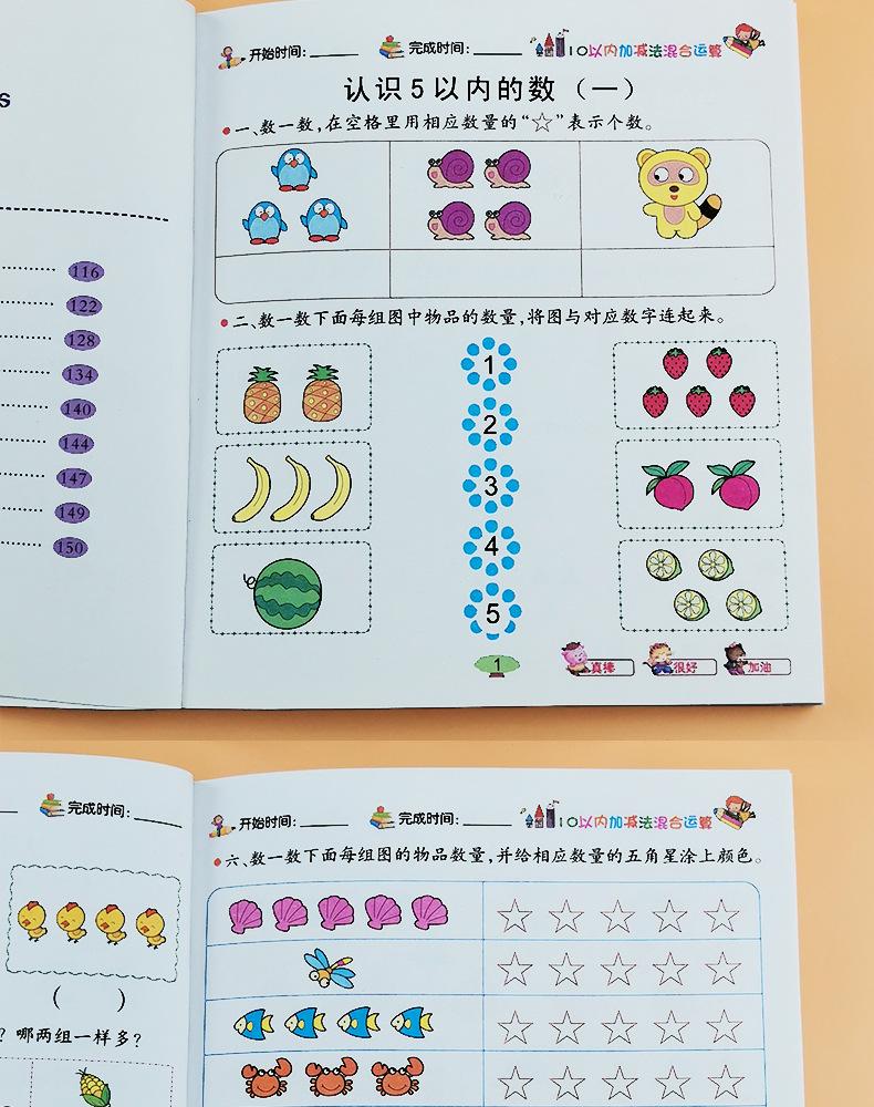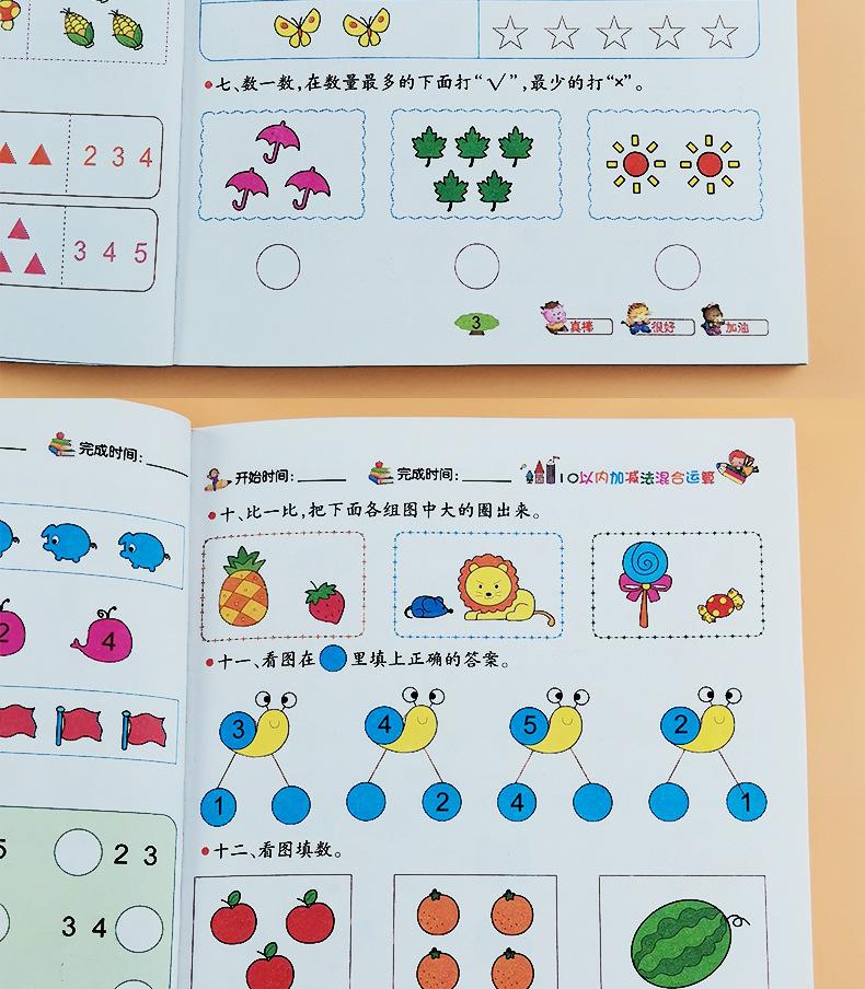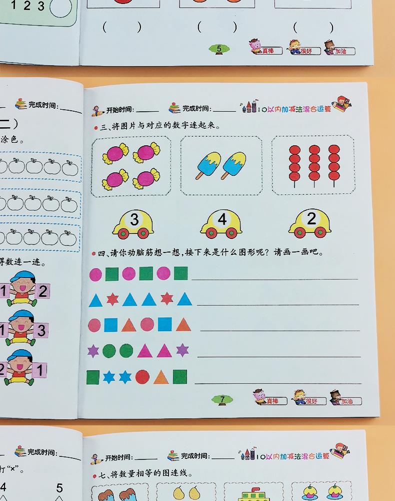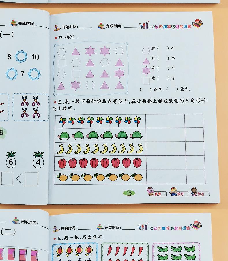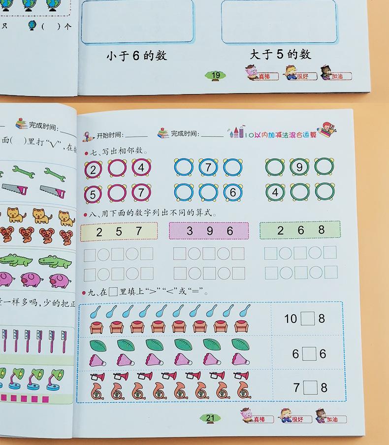 Pinyin Preescolar para Niños Matemáticas Una Lección y Una Práctica Operaciones Mixtas de Suma y Resta Dentro de 20/50/100 Dentro de 10