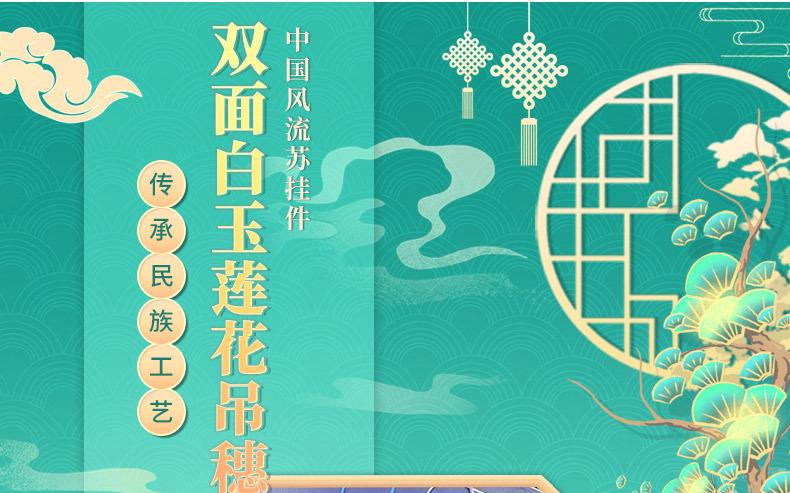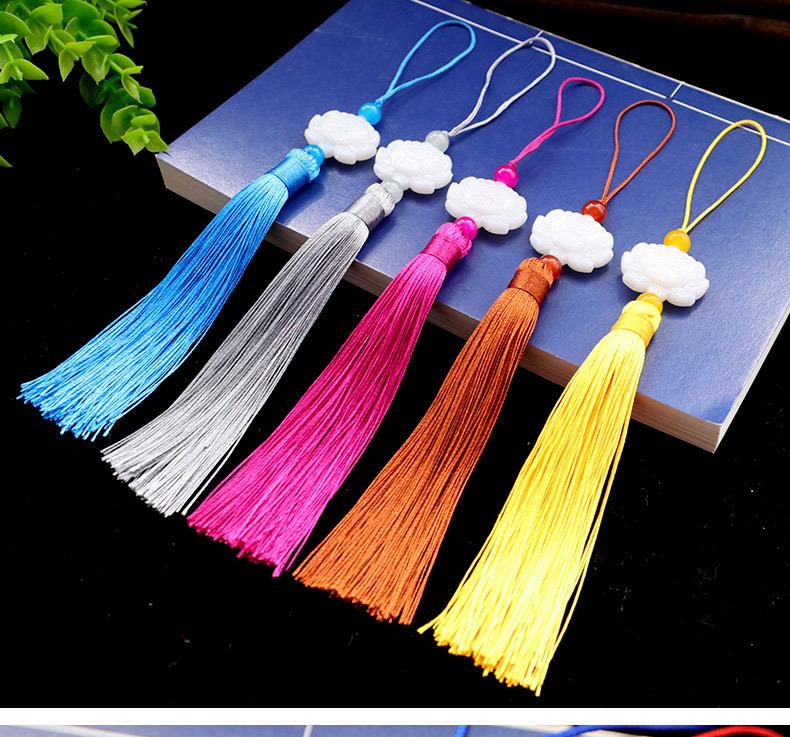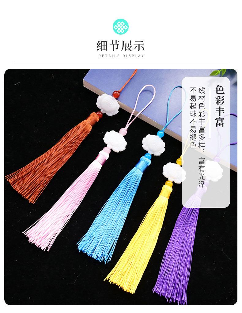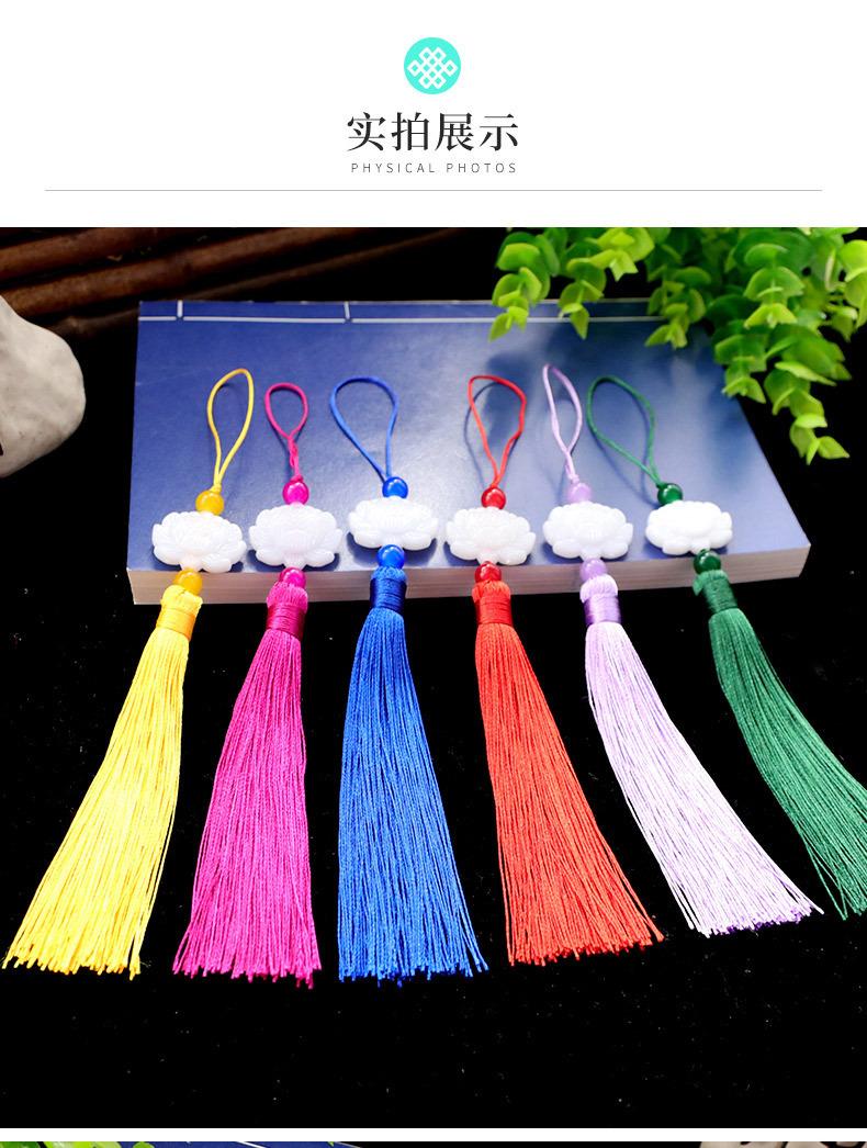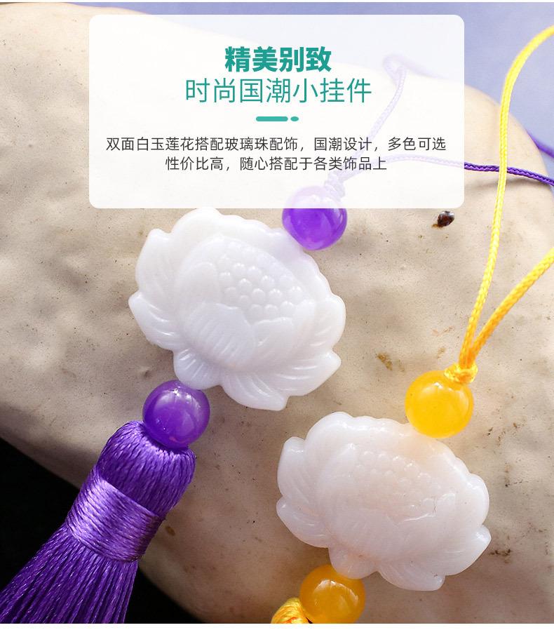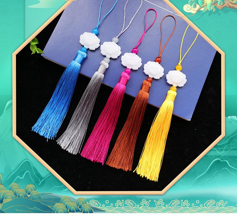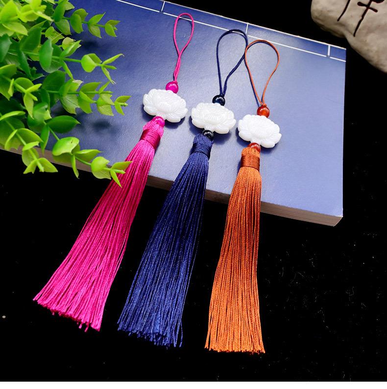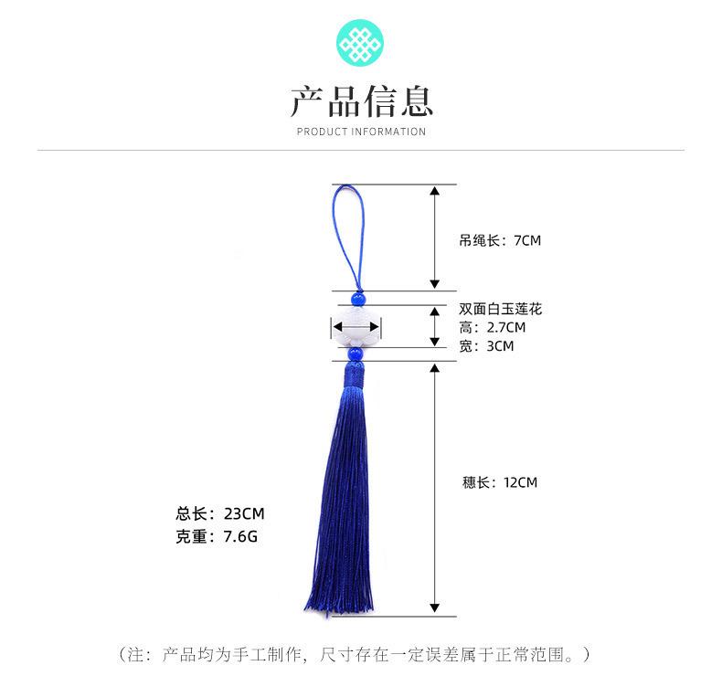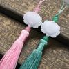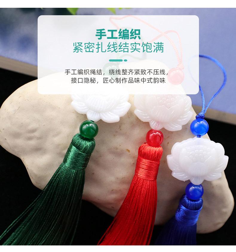 Abanico tejido a mano de doble cara con borla de loto de jade blanco, colgante chino, borla para abanico, accesorios de ropa de estilo antiguo, borla