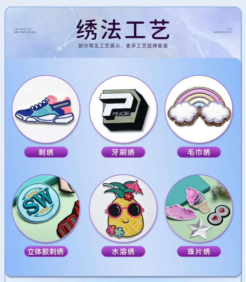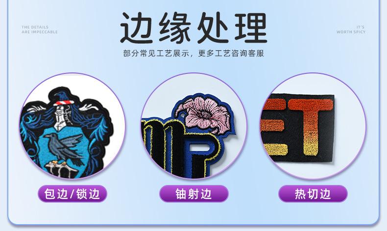 Insignia de borde bloqueado para cabello liso de fábrica, bordado, para el brazo, parte trasera con pegamento, logo bordado, calcomanías de tela bordadas, decoración personalizada, nueva tendencia, accesorios de ropa