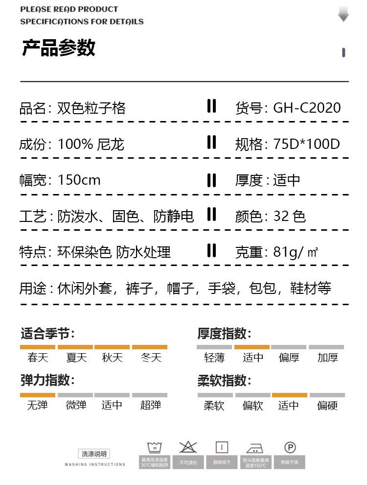 Tela de chaqueta casual de nailon a cuadros 75D a cuadros de partículas bicolor repelente al agua cortavientos tela para sombrero de bolsa