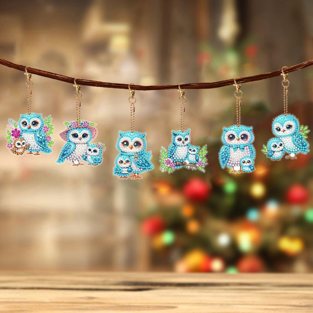 Espejo Cruzado 5D Nuevo 6 Piezas Pintura Diamante Material Acrílico Llavero Doble Cara DIY Diamante Completo Búho Colorido