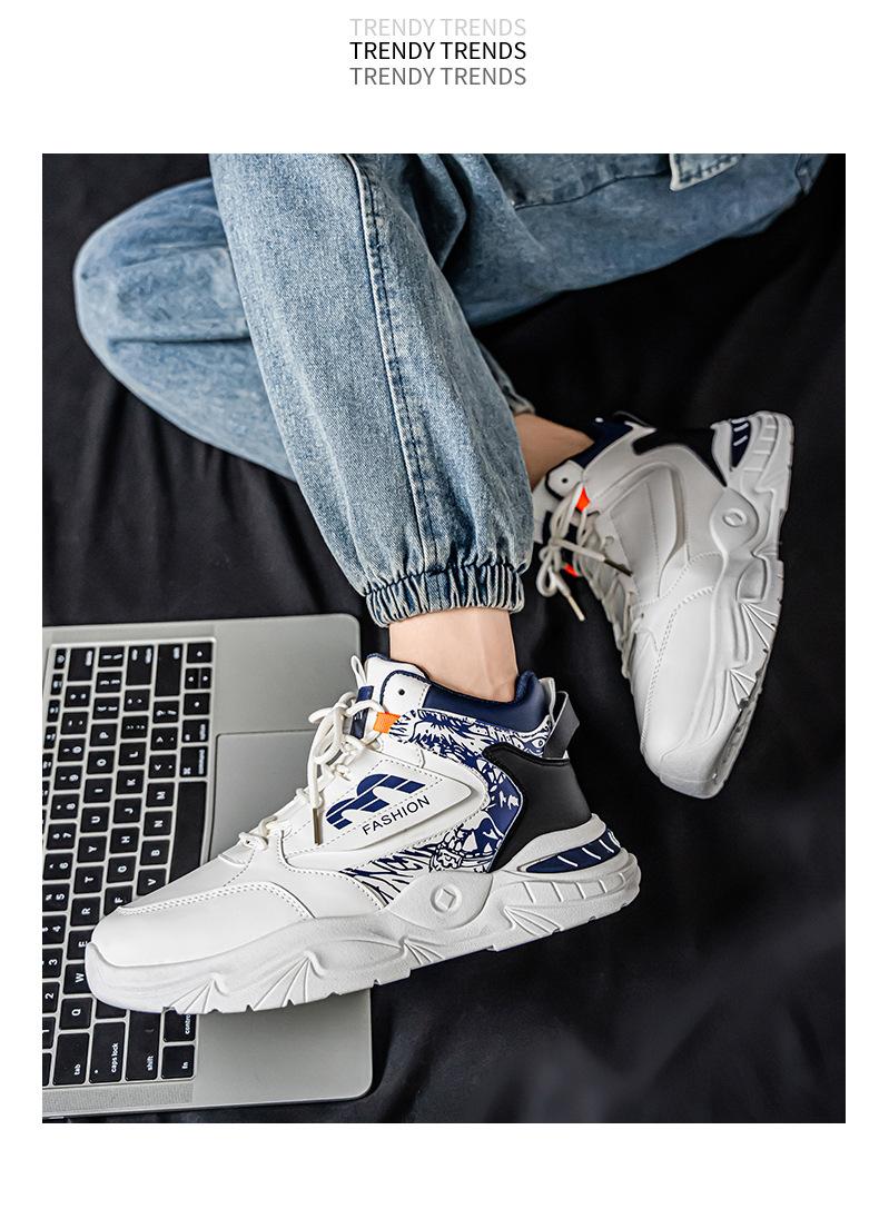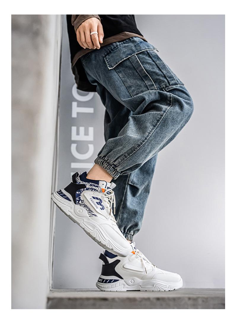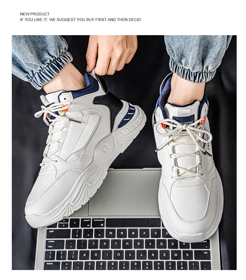 Zapatos de otoño para hombre, nuevos zapatos blancos transpirables de caña alta, zapatos deportivos para hombre, zapatos casuales de moda para papá con suela gruesa versátiles y modernos