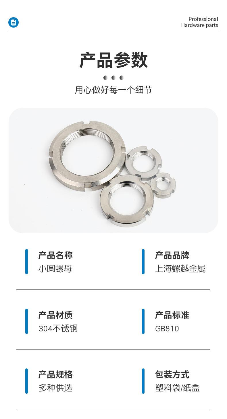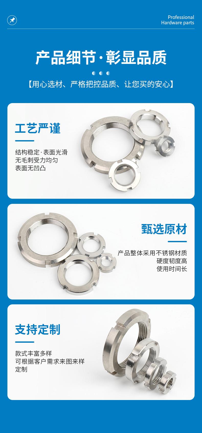 Tuerca Redonda Pequeña Ranurada de Acero Inoxidable 304 Gb810 Estándar Nacional Precisión Tuerca Redonda Pequeña Serie M10-M140 en Stock
