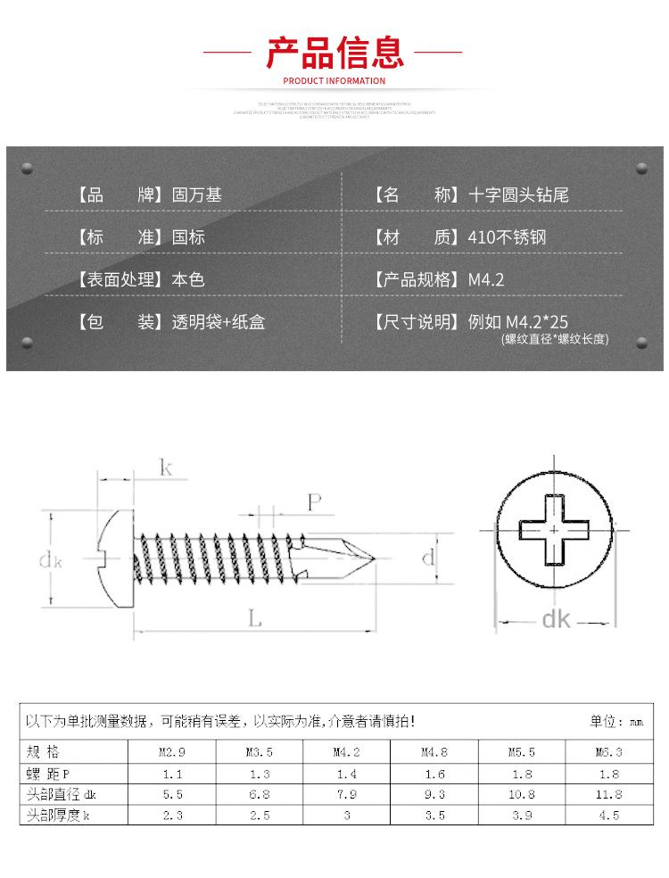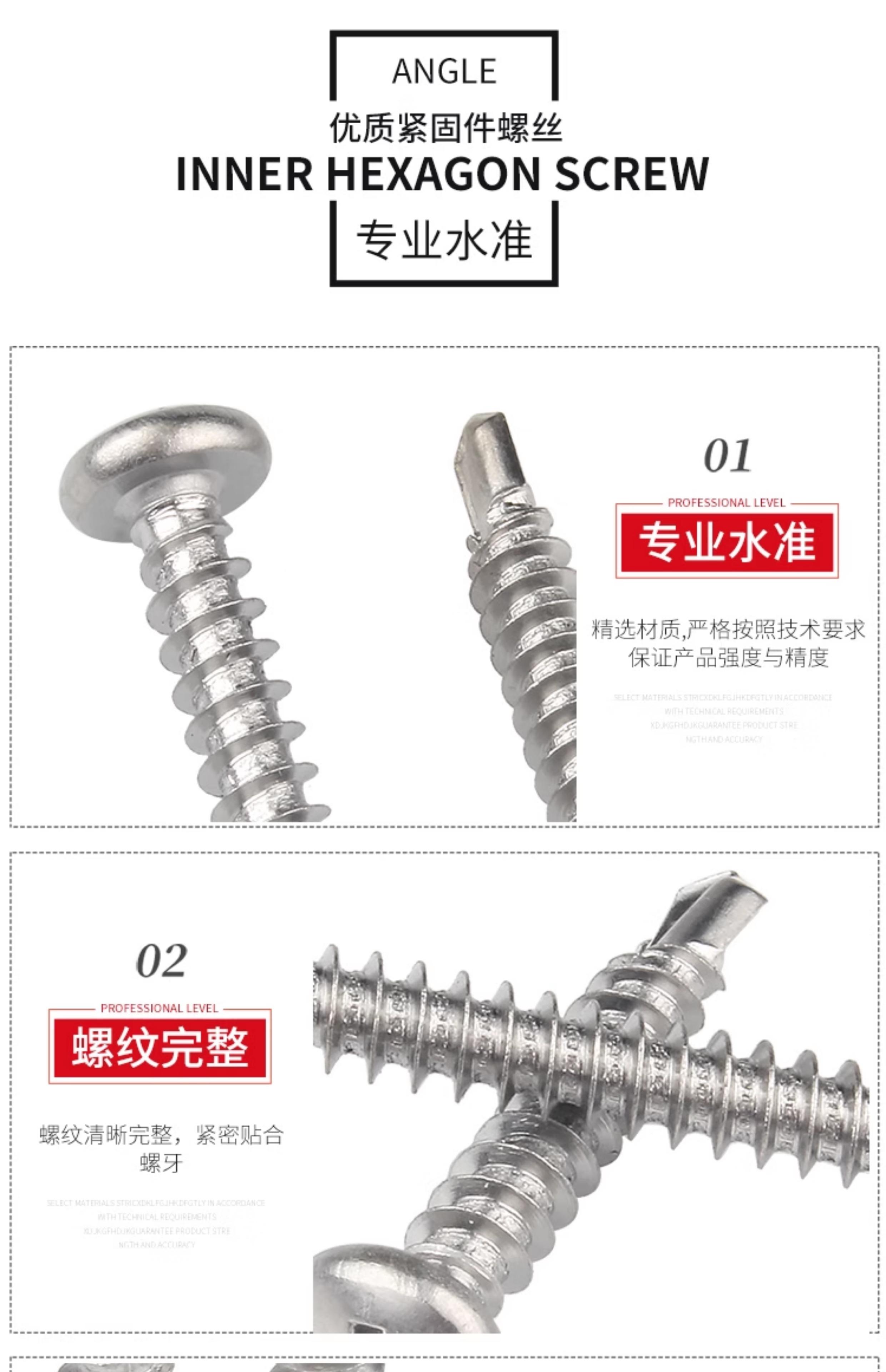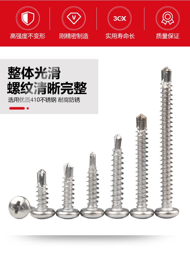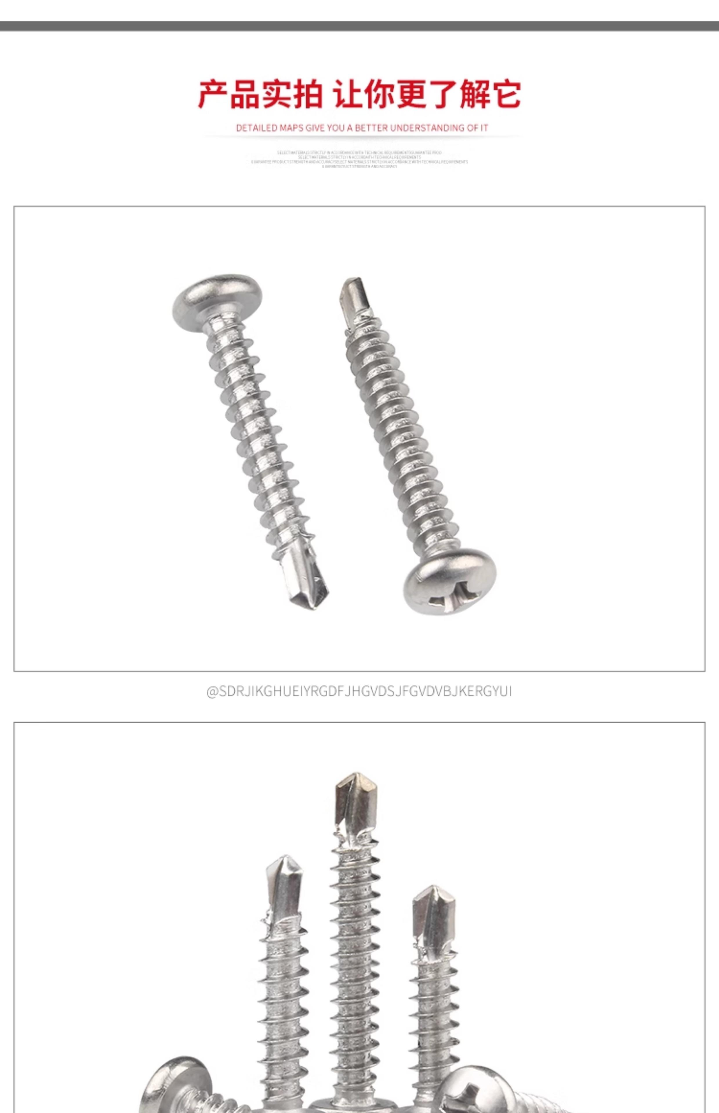 Tornillo autoperforante de cabeza redonda cruzada de acero inoxidable 410, tornillo de cola de milano con perforación de cabeza plana M4.2M4.8/M5.5