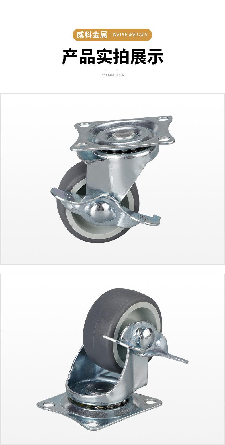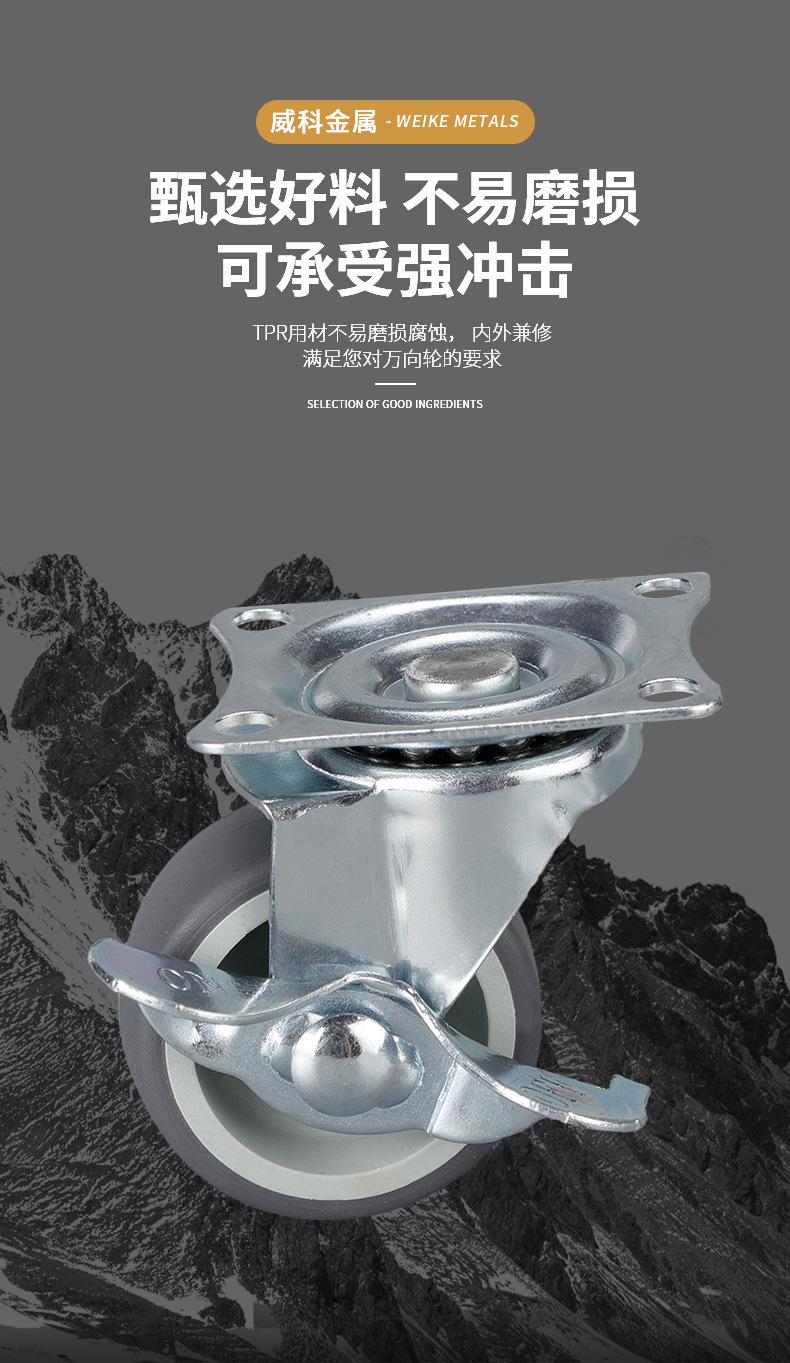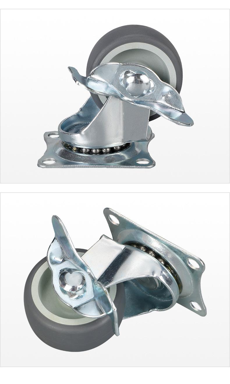 Rueda giratoria de 1.5 pulgadas, rueda giratoria de TPR con rodamiento de banda de goma suave, rueda giratoria con freno de borde plano, rueda universal, rueda universal