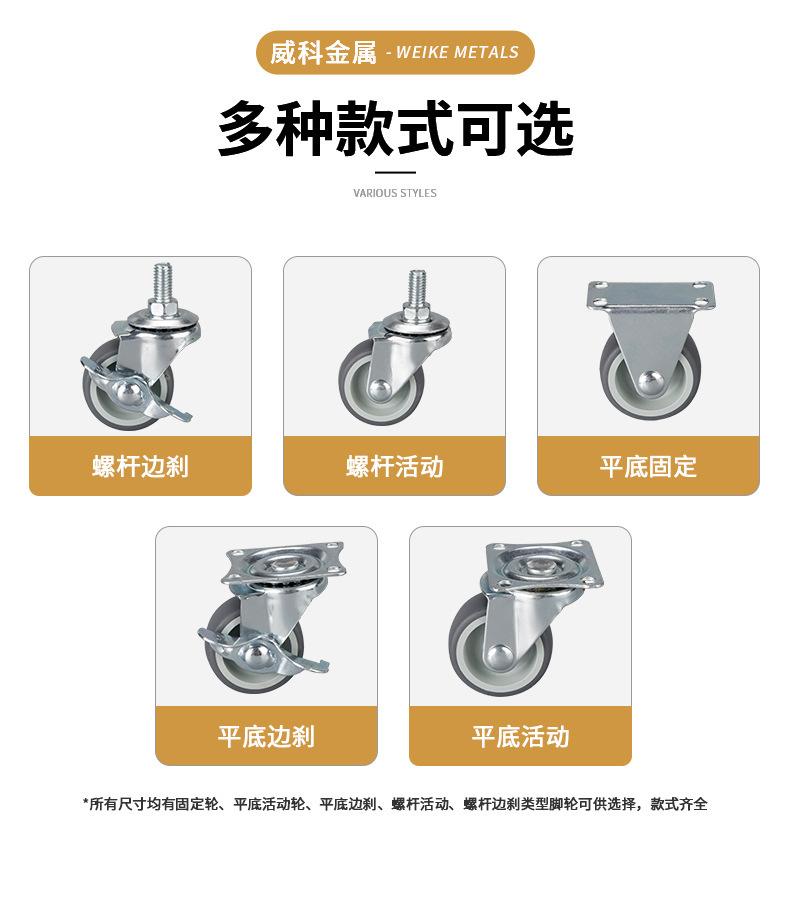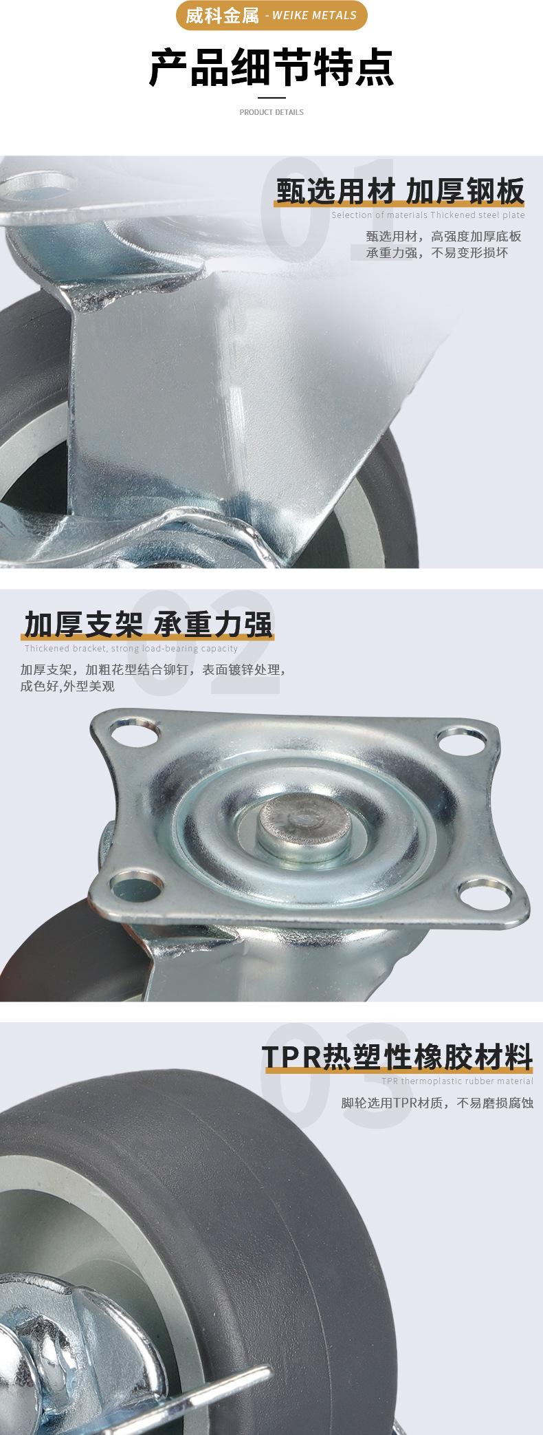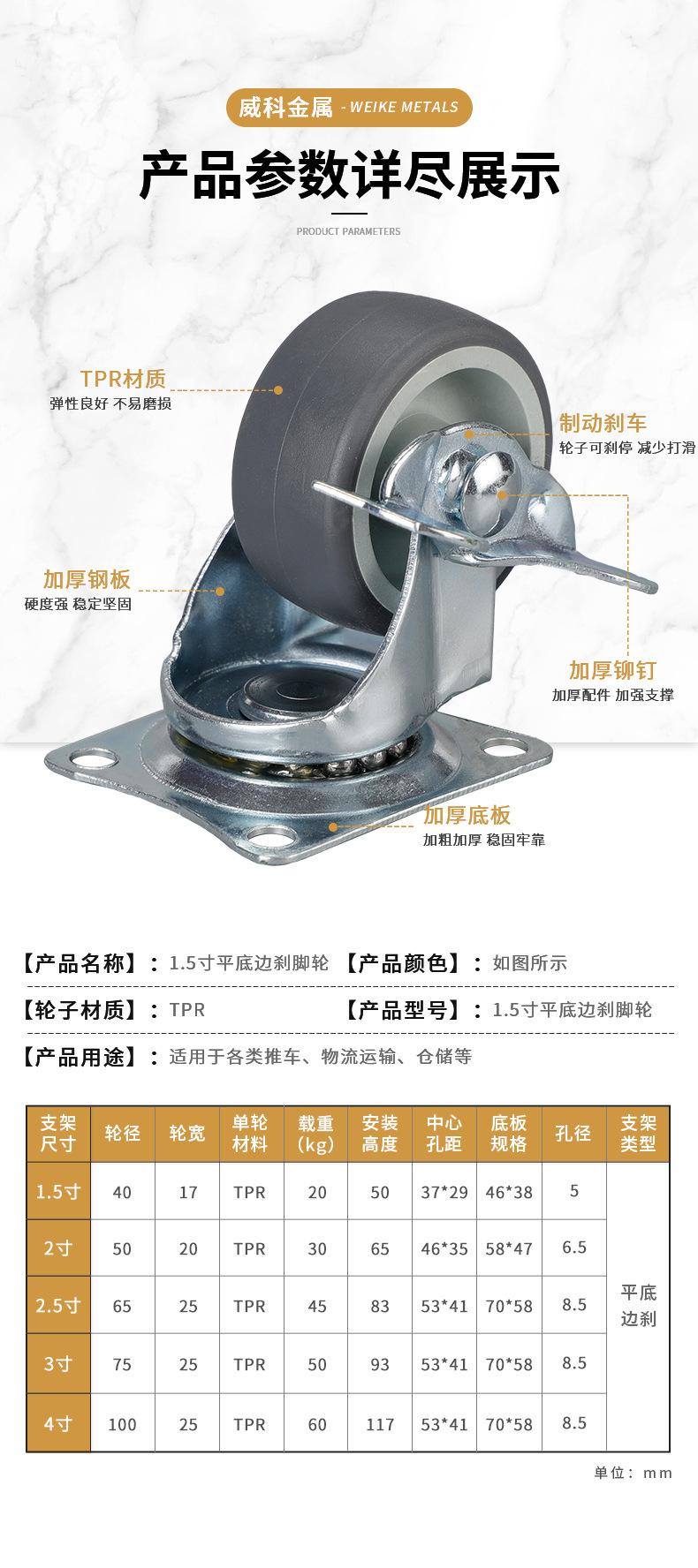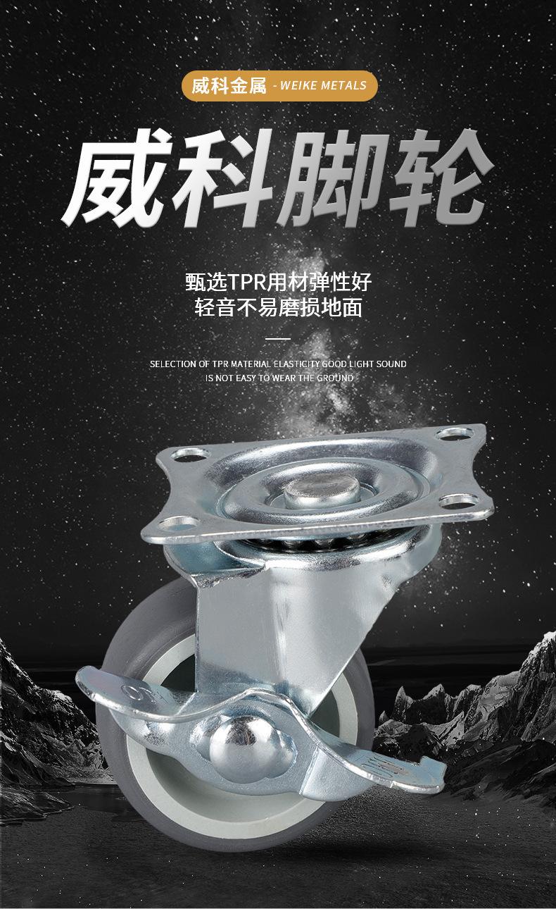 Rueda giratoria de 1.5 pulgadas, rueda giratoria de TPR con rodamiento de banda de goma suave, rueda giratoria con freno de borde plano, rueda universal, rueda universal