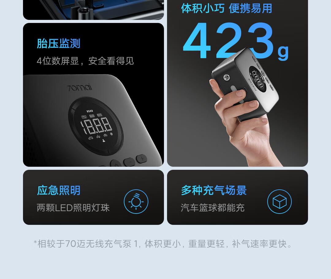 Inflador de Aire Inalámbrico 70Mai 2 Inflador de Coche Portátil Inflador de Neumáticos Pantalla de Visualización Digital