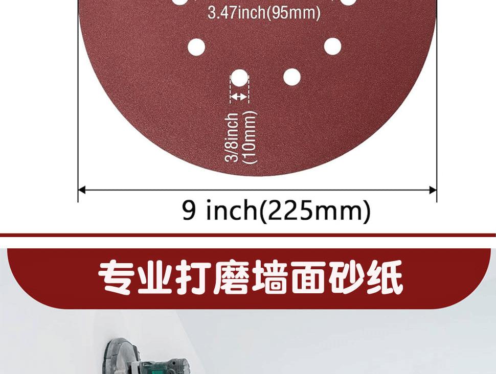 Disco de Lija de 9 Pulgadas con 10 Agujeros Cepillado para Paredes, Pulido de Madera, Muebles, Pintura, Pulido, Respaldo de Terciopelo, Lija Flotada 225mm