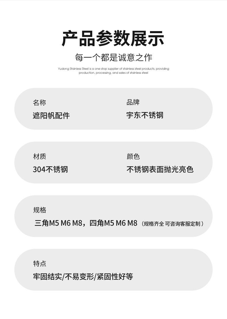 Set de Accesorios para Vela de Sombra de Acero Inoxidable 304 Triangular Diamante Hebilla de Puerta Tornillo Cesta de Flores Hebilla de Resorte Herrajes para Red de Sombra