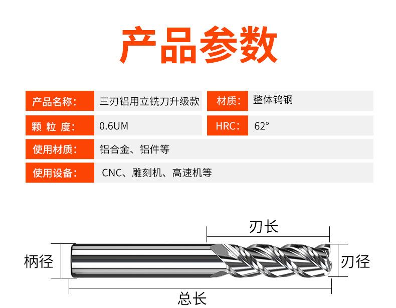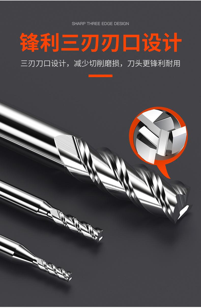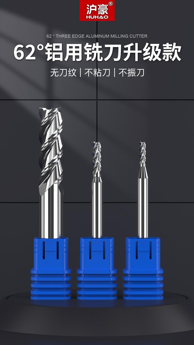 Fresa de Aluminio de 62 Grados Huhao 3 Filos Extendida Especial Alto Brillo Herramienta Cnc Fresa de Carburo de Tres Filos
