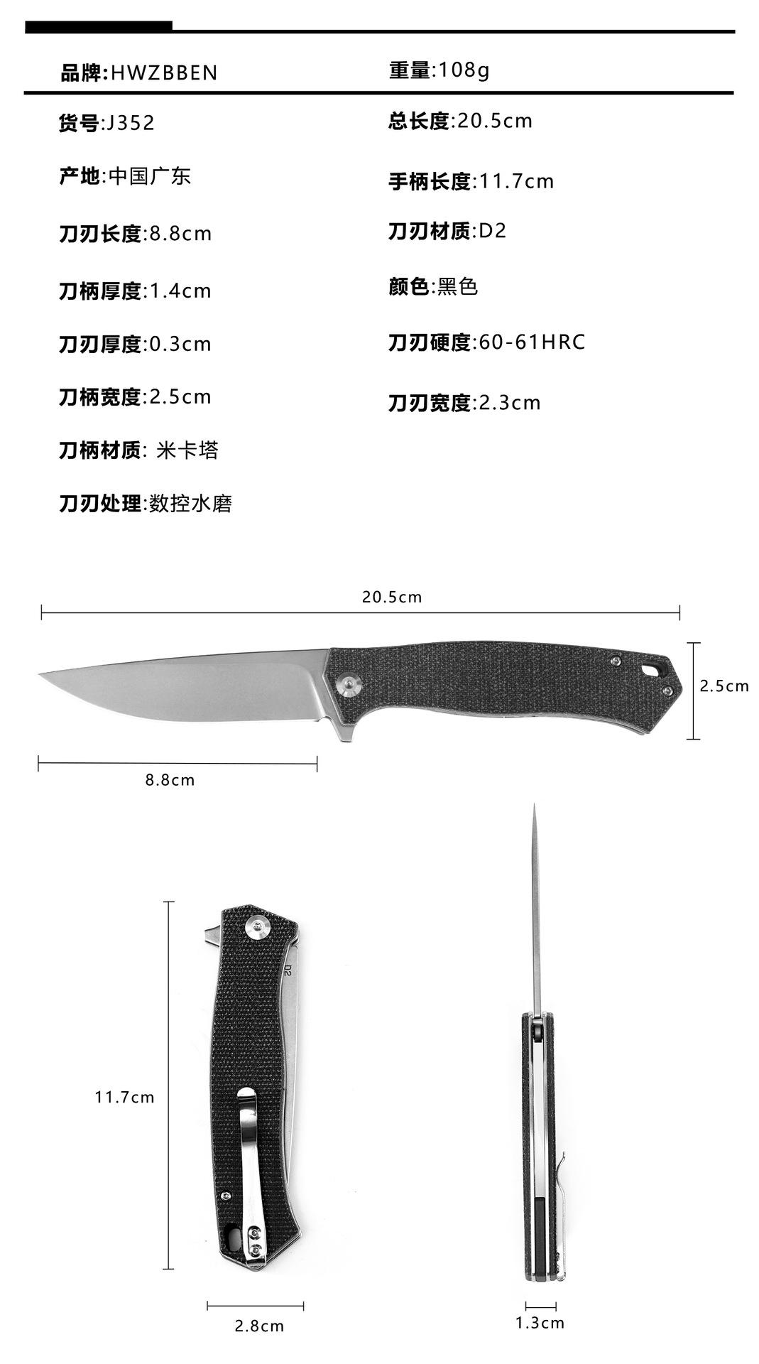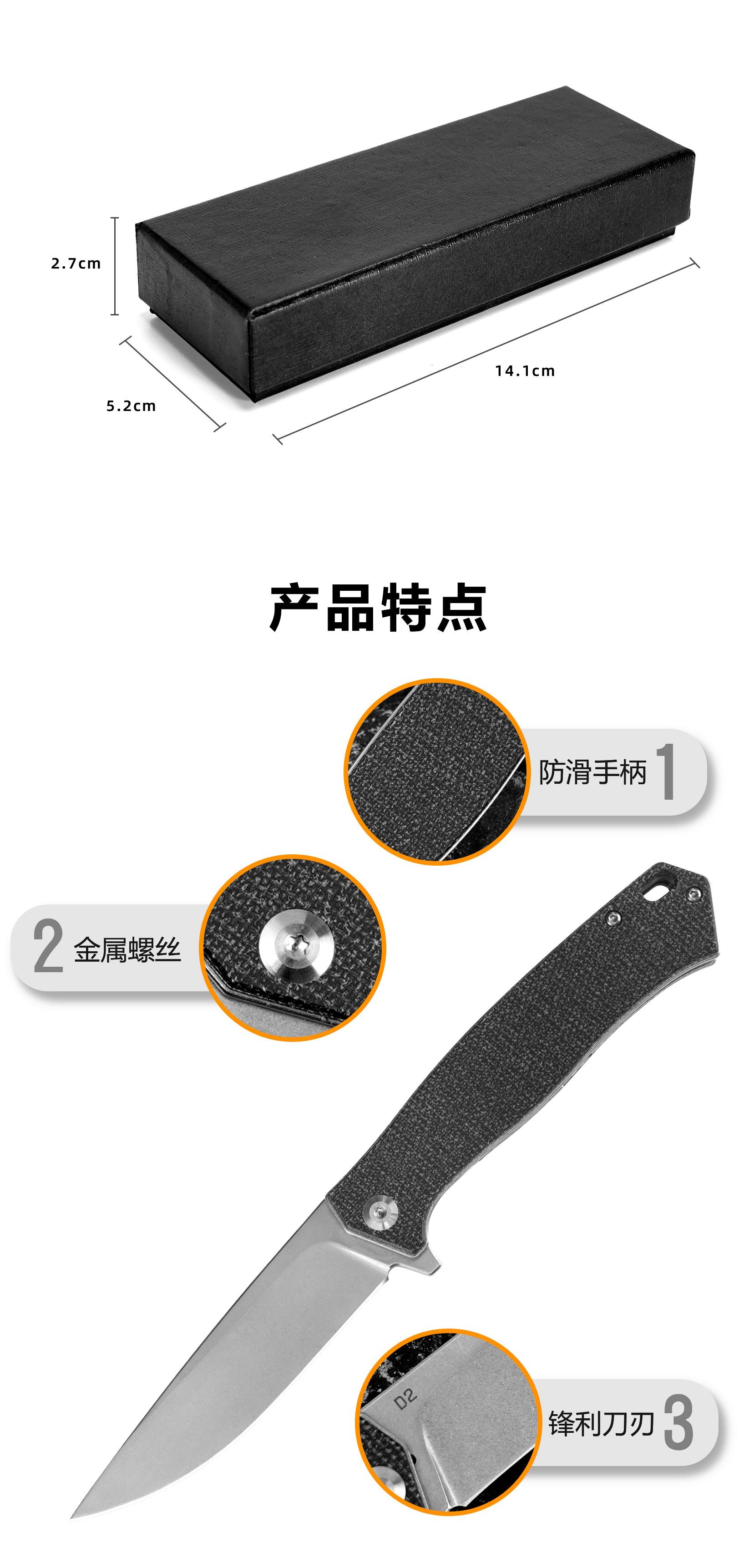 Spot Cuchillo Pequeño Fábrica Cuchillo Plegable Mango Micarta Hoja de Acero D2 Bolsillo Portátil EDC Cuchillo Plegable para Camping al Aire Libre