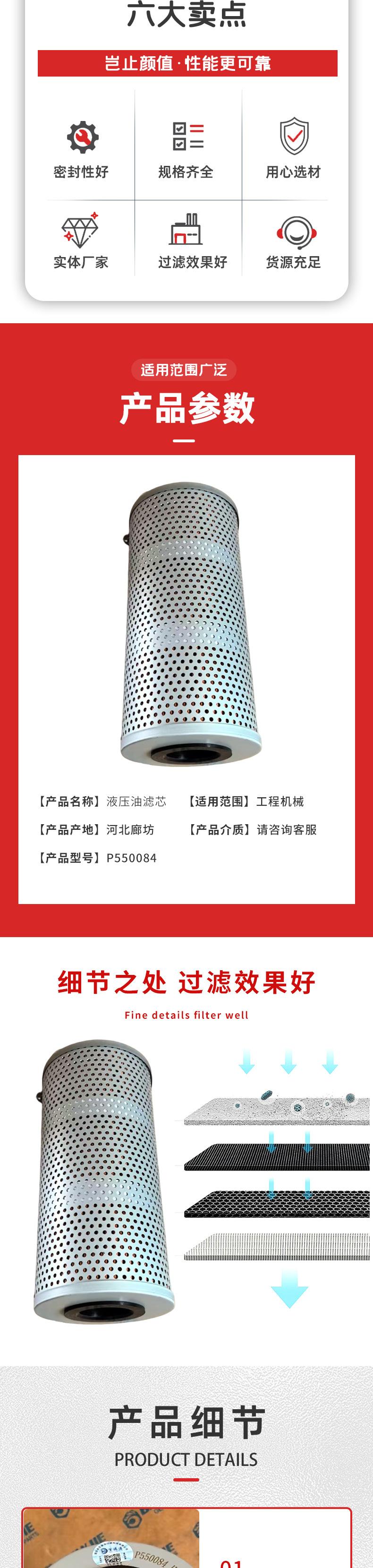 Elemento de Filtro de Aceite Hidráulico P550084 Mantenimiento de Equipo Industrial Elemento de Filtro de Aceite Fabricante Elemento de Filtro de Aceite de Retorno de Excavadora Filtro