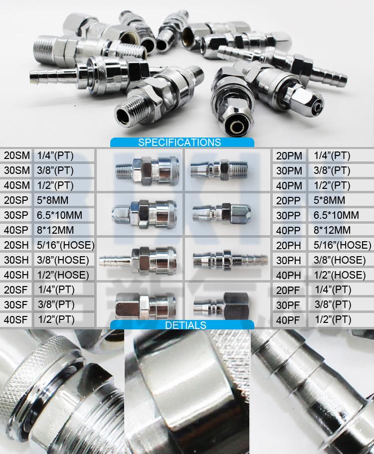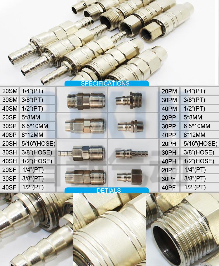 Descripción detallada:Cualquier modelo de conectores macho y hembra se puede conectar entre sí. Si el conector rápido no se puede insertar en el tubo, caliente el tubo.