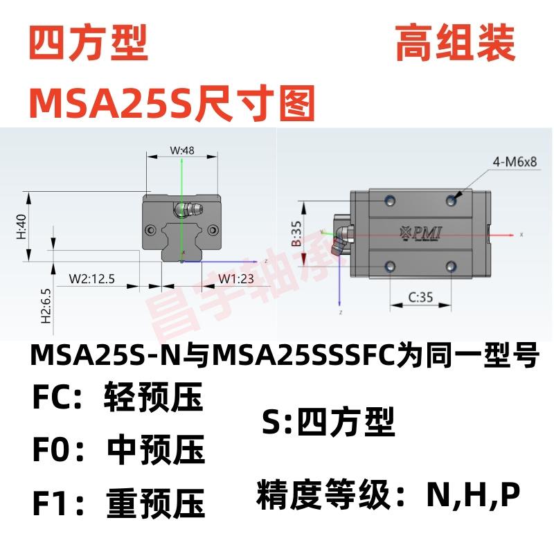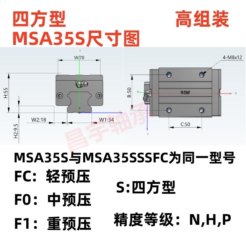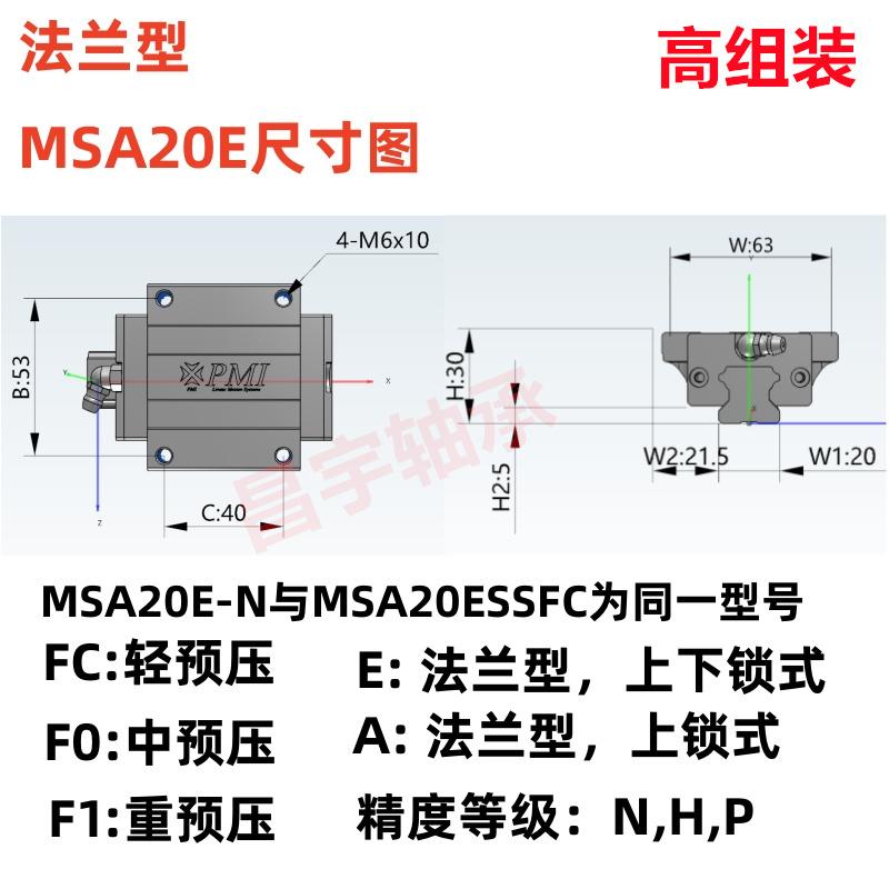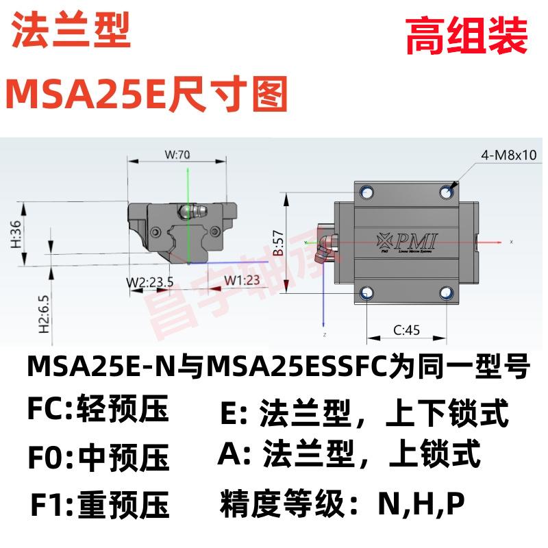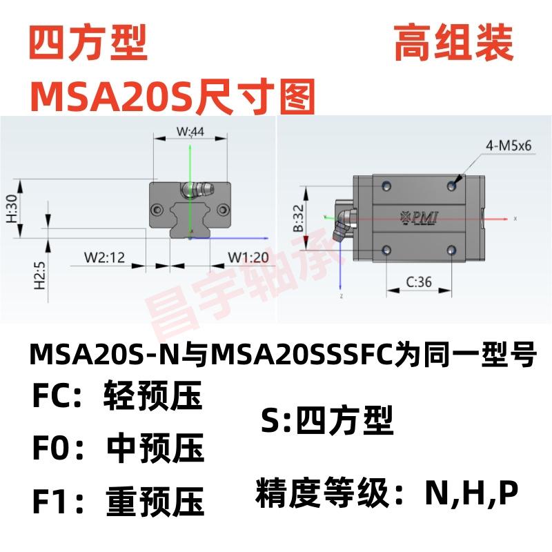 Pmi Corredera de Riel de Guía Lineal Msa Msb 15 20 25 30 35 45 S E Ls S-N