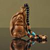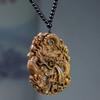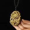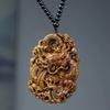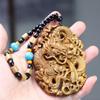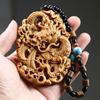 Colgante de Dragón de Palo de Rosa Tallado a Mano de Doble Cara Sándalo Verde Dragón Volador Jugando con Perla Adorno Decorativo para Colgar en el Coche