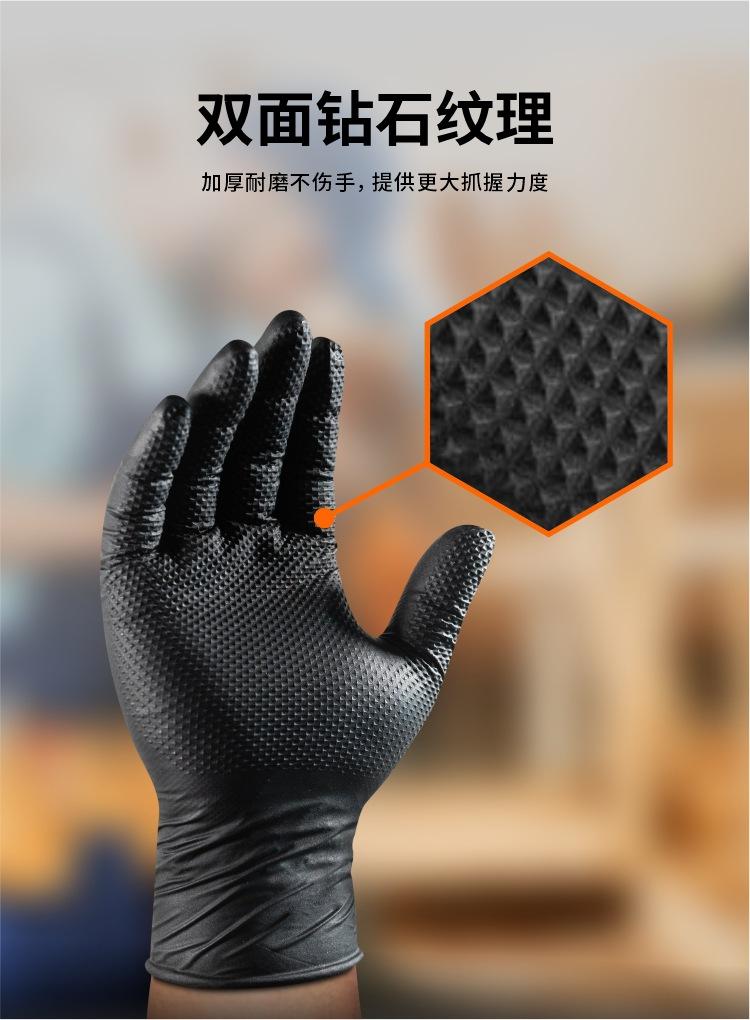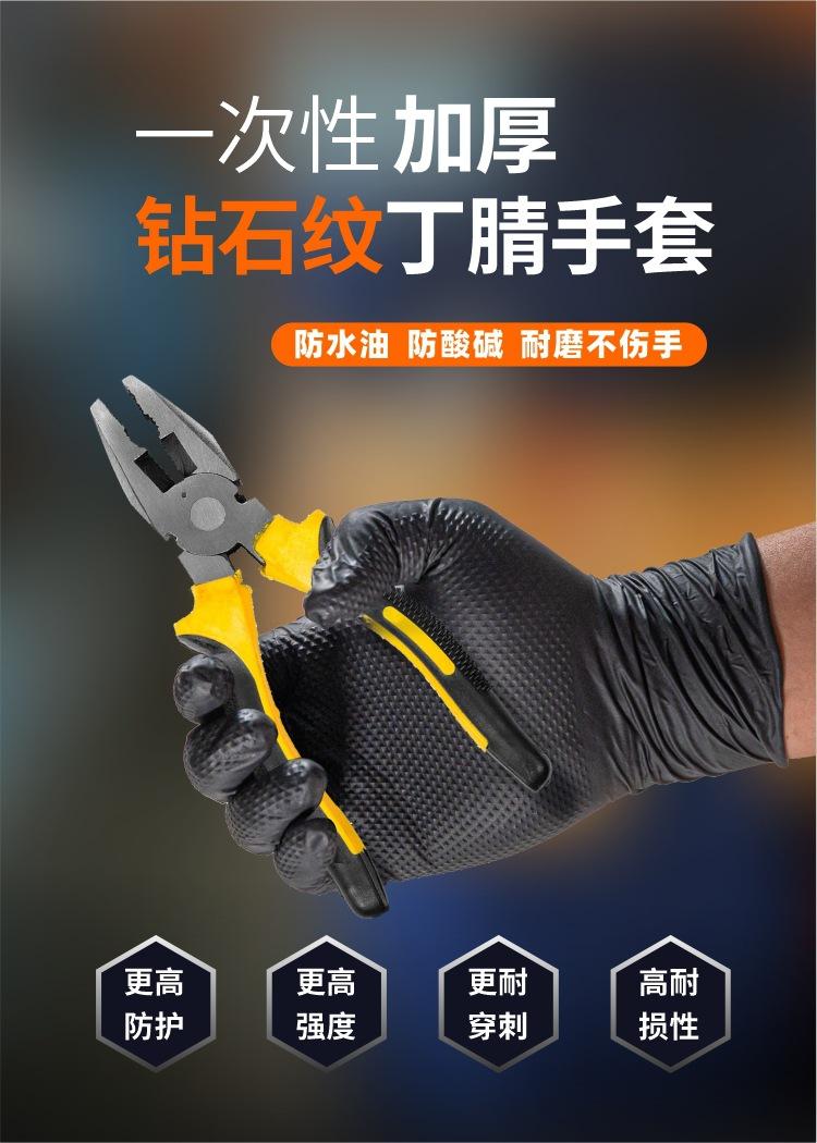 Ambochen Guantes Desechables Gruesos Resistentes al Desgaste Patrón Diamante Ding Qing Inglés Industrial Reparación Automotriz Guantes de Nitrilo Puro