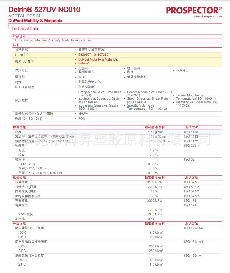 Pom American Dupont 527Uv Nc010 Bk701 Resistente a la intemperie Alta rigidez Resistente a los rayos UV Resistente al impacto y Resistente al desgaste