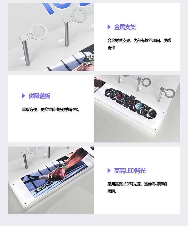 Soporte de Exhibición de Relojes Acrílico Personalizado de Escritorio Magnético Publicitario Letra Luminosa Estante de Exhibición Soporte Metálico Procesamiento de Stand de Exposición