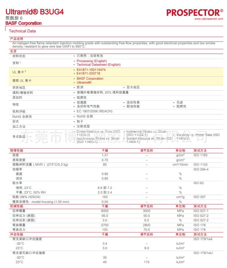 Ultramid Pa6 Alemán Basf B3Ug4 Retardante de Llama Libre de Halógenos Gf20% Resistencia a Altas Temperaturas Mejorada