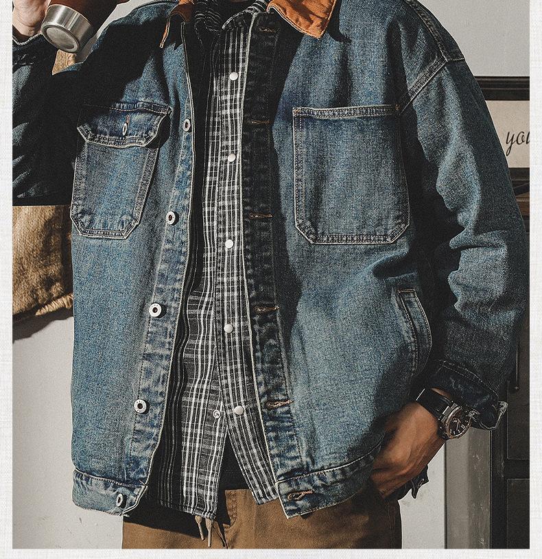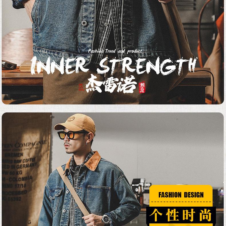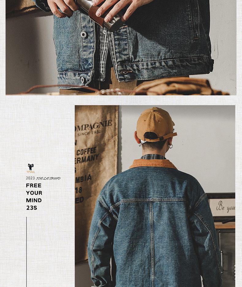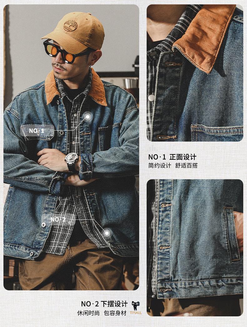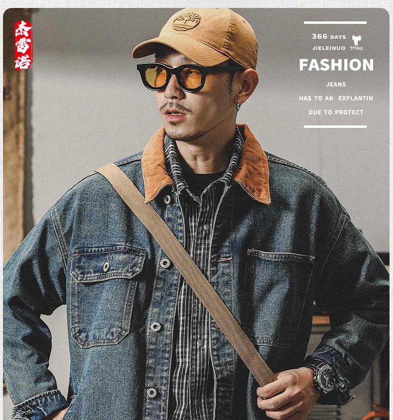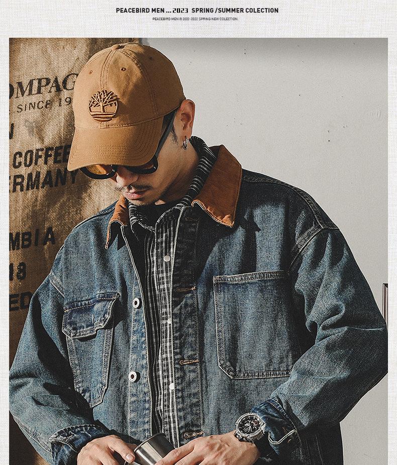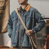 Chaqueta de mezclilla clásica de estilo americano con bloques de color retro para hombre, moda de primavera y otoño, marca de moda, guapo, moderno, lavado, chaqueta de trabajo