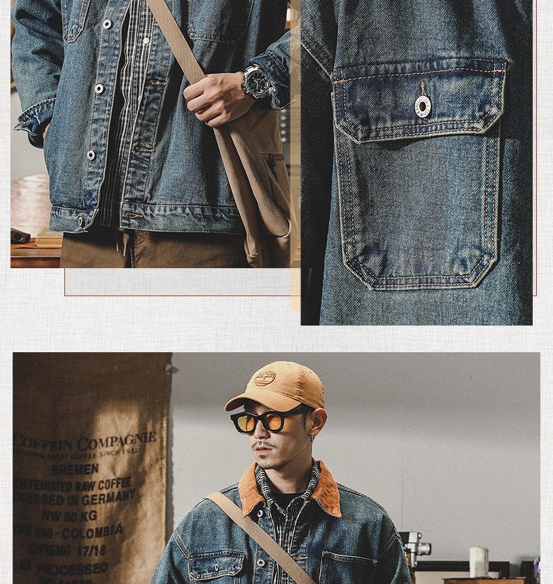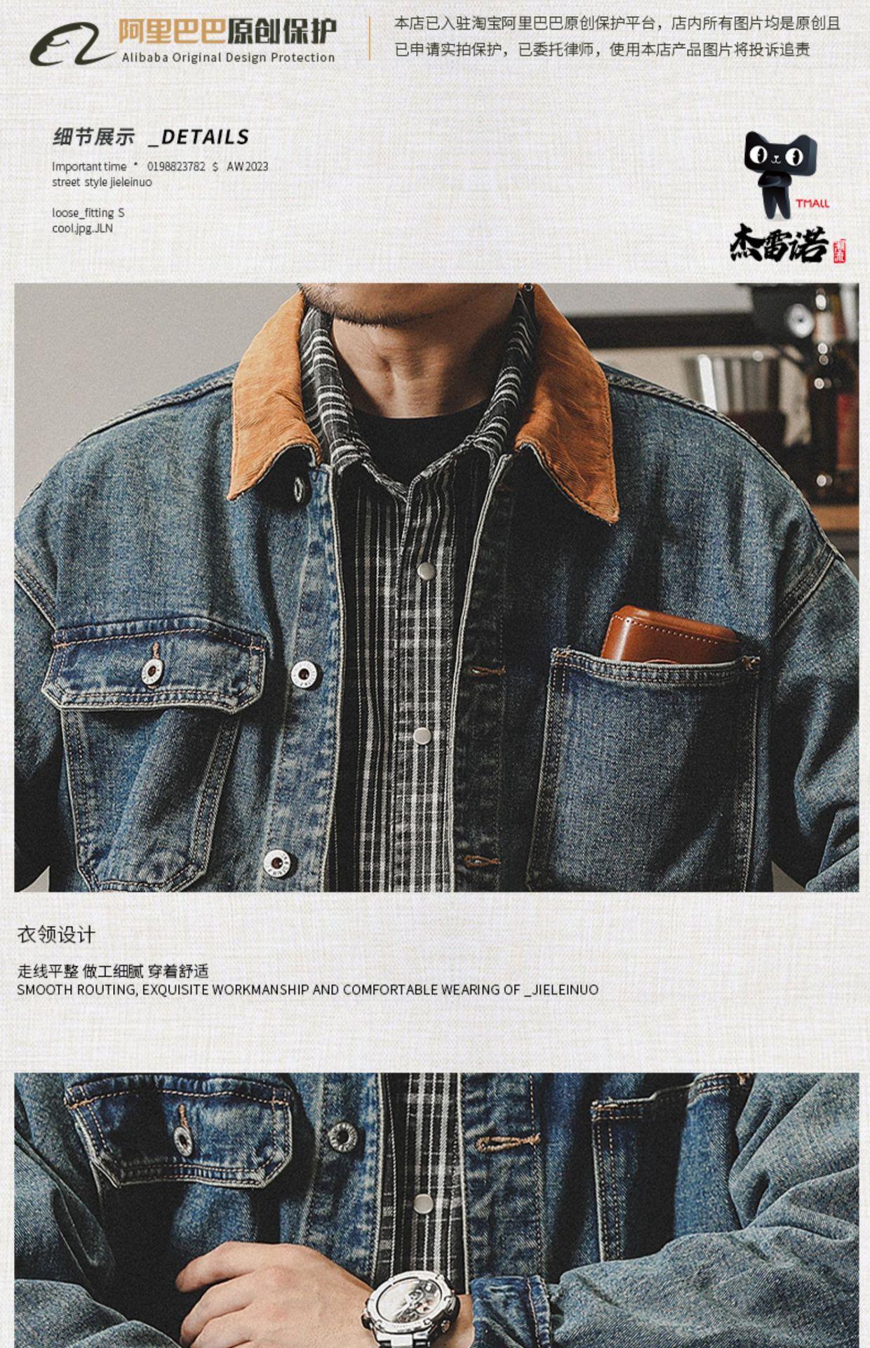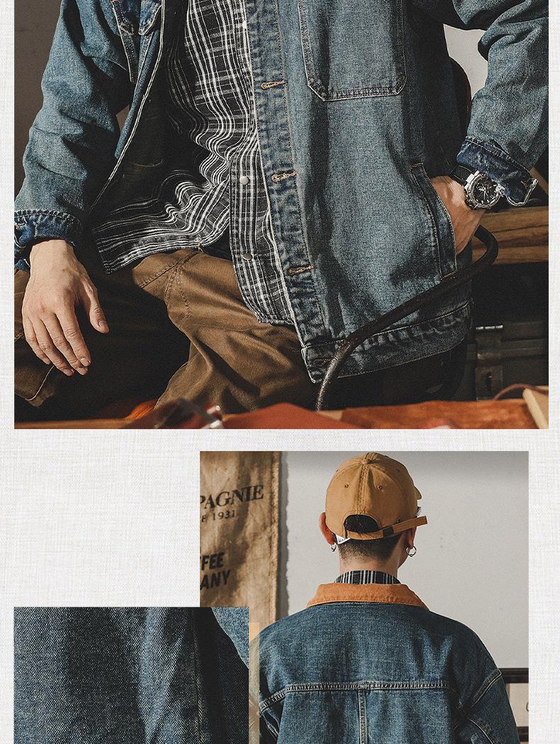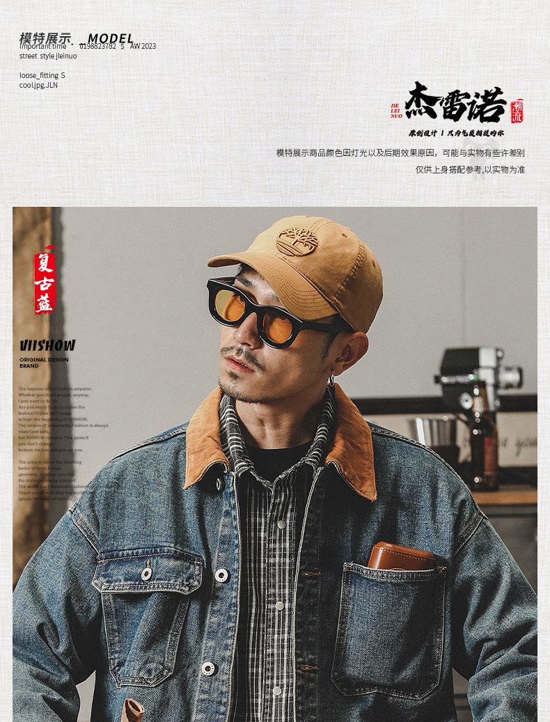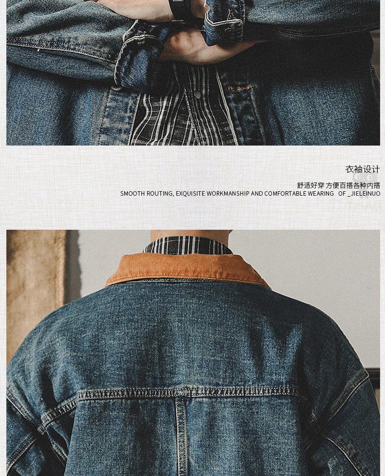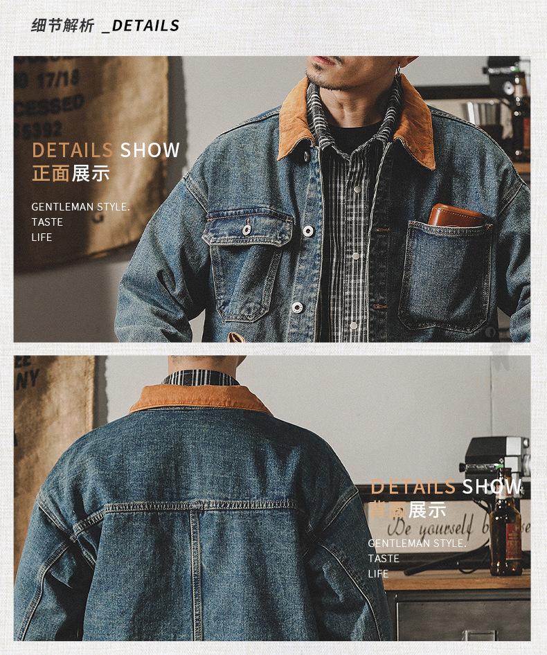 Chaqueta de mezclilla clásica de estilo americano con bloques de color retro para hombre, moda de primavera y otoño, marca de moda, guapo, moderno, lavado, chaqueta de trabajo