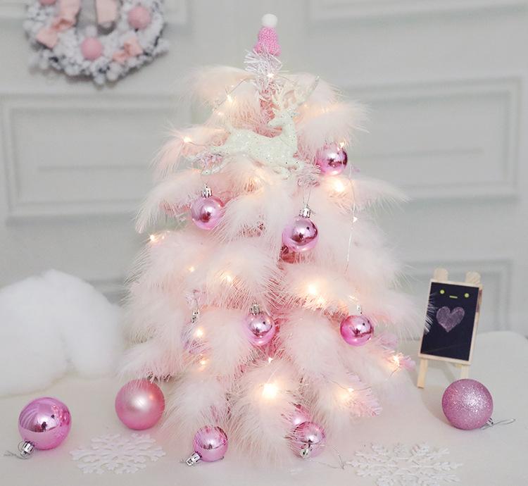 Popular Set de Árbol de Navidad Rosa 45cm Mini Árbol de Navidad Pluma Infantil DIY 60cm Set de Navidad Árbol