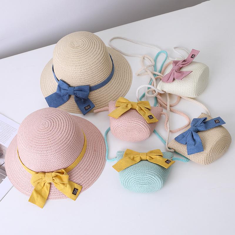 Children's straw hat, Children's bags, Adult straw hat, Adult bags, Children's suit (hat + bag)