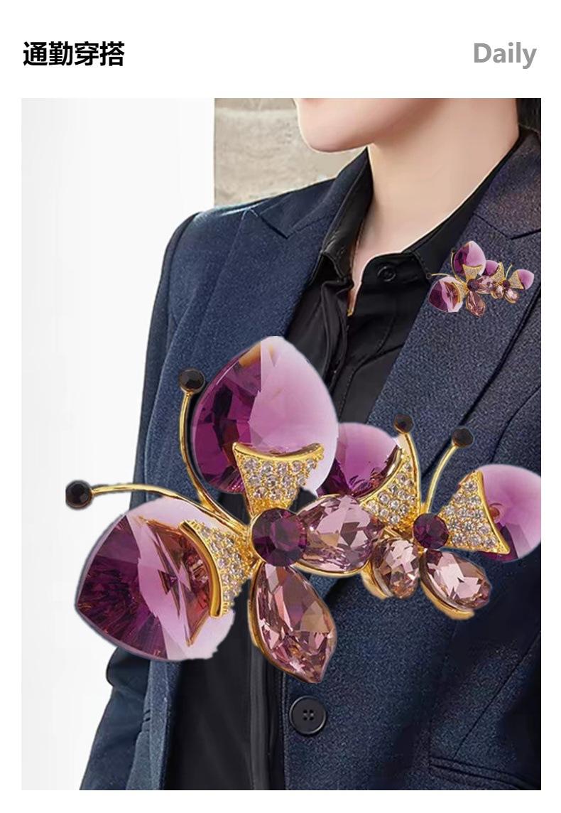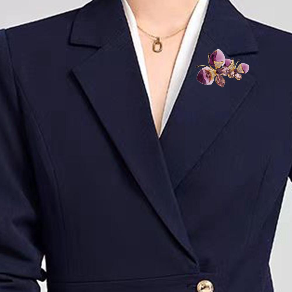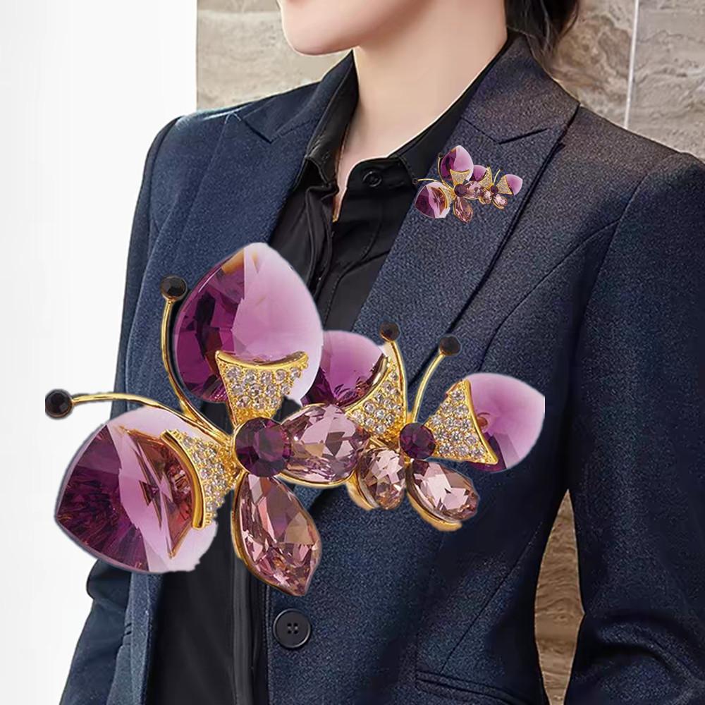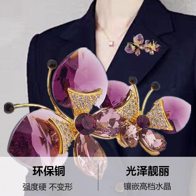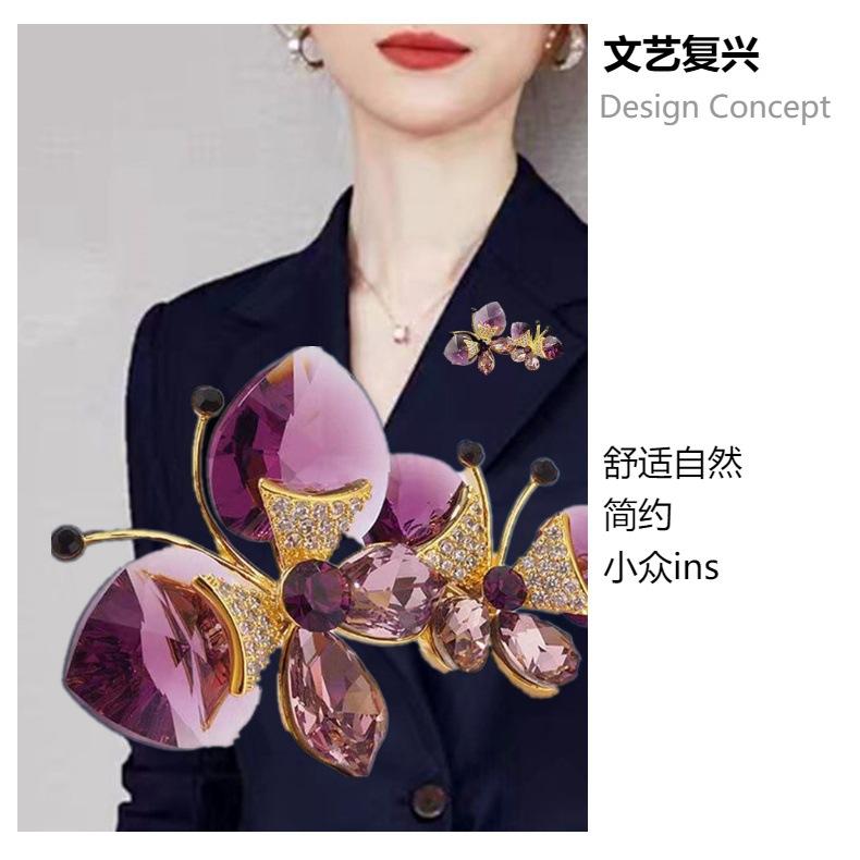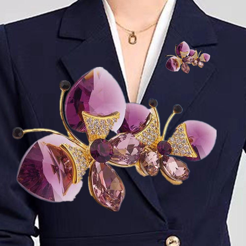 Broche de Mariposa Doble de Cristal de Lujo Diseño Nicho de Alta Gama Combinable Elegante Pin para Traje Accesorios Corsage de Insecto