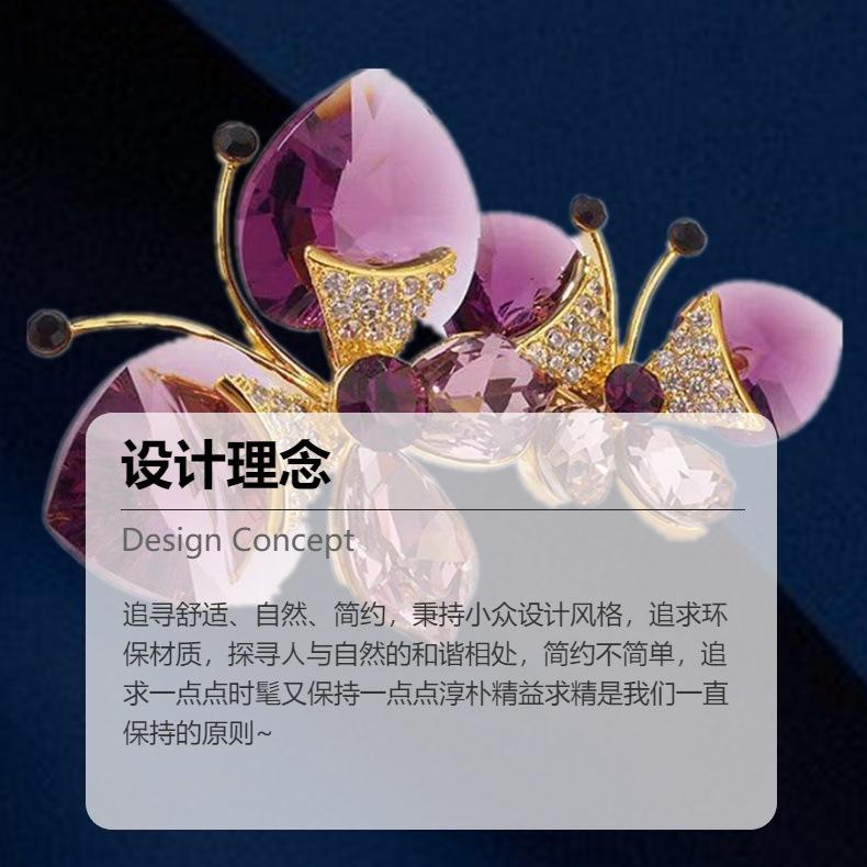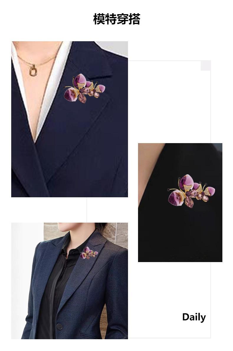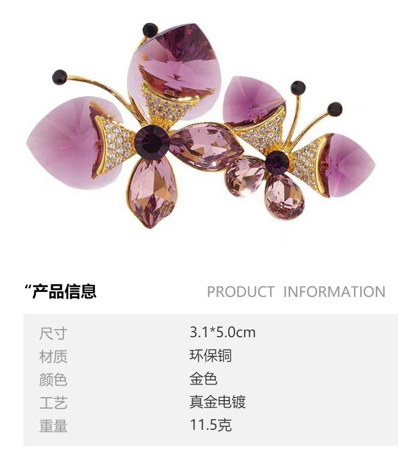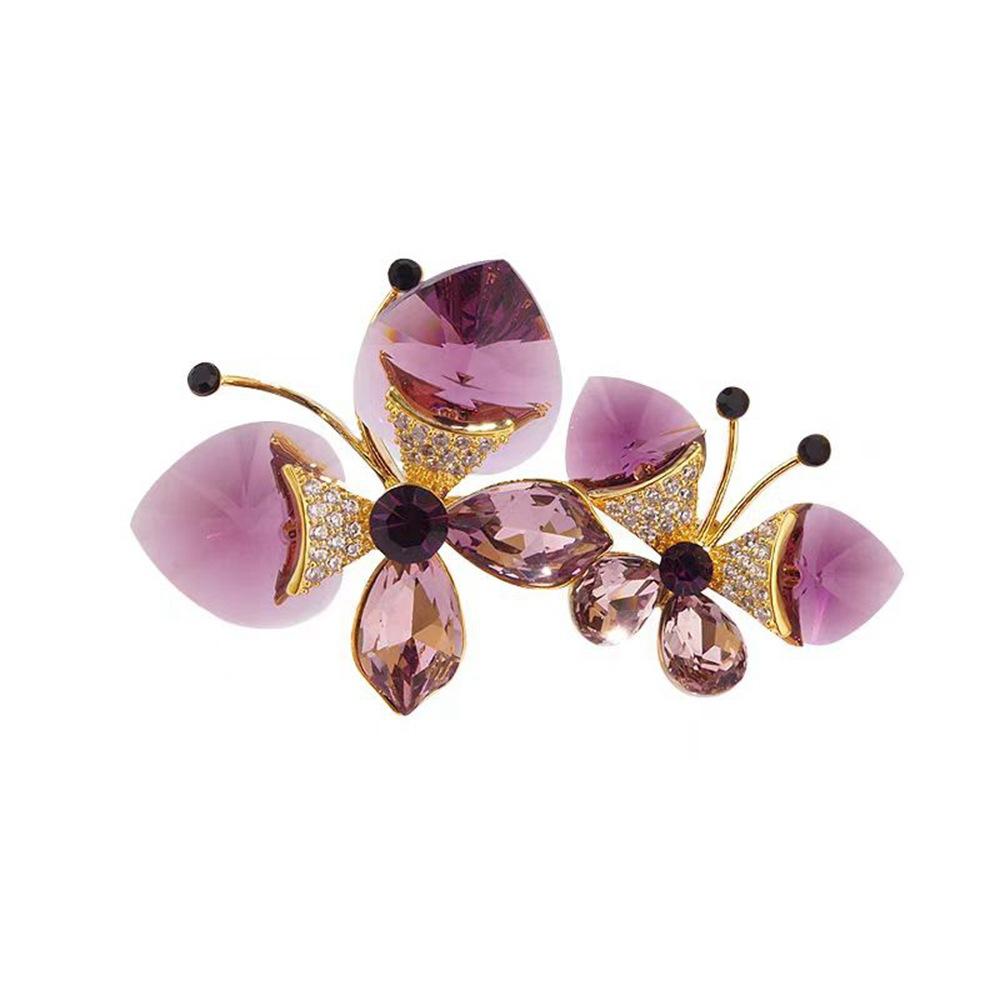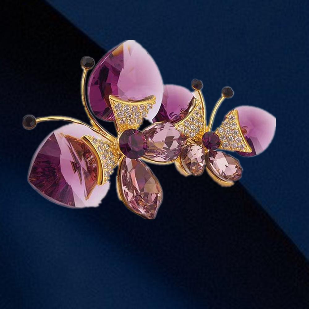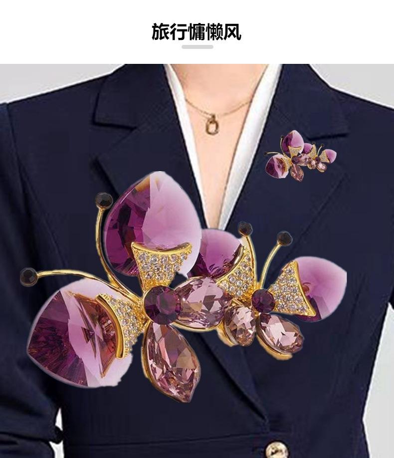 Broche de Mariposa Doble de Cristal de Lujo Diseño Nicho de Alta Gama Combinable Elegante Pin para Traje Accesorios Corsage de Insecto