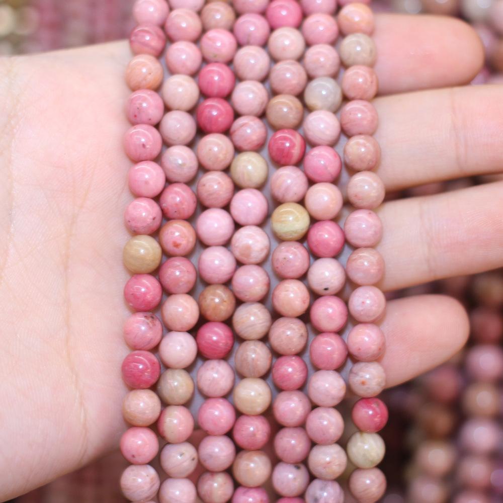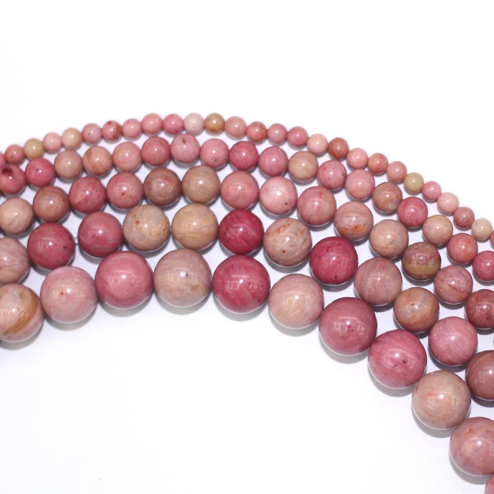 Cuentas Sueltas Grano de Madera Roja Piedra Natural Piedra Rosa Cuentas Redondas Piedra Flor de Durazno Cuentas Semiterminadas Accesorios de Joyería DIY al por Mayor
