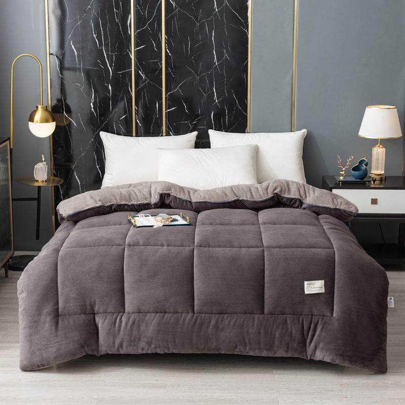 Edredón de invierno de terciopelo de leche de color liso transfronterizo, núcleo de manta de lana de cordero