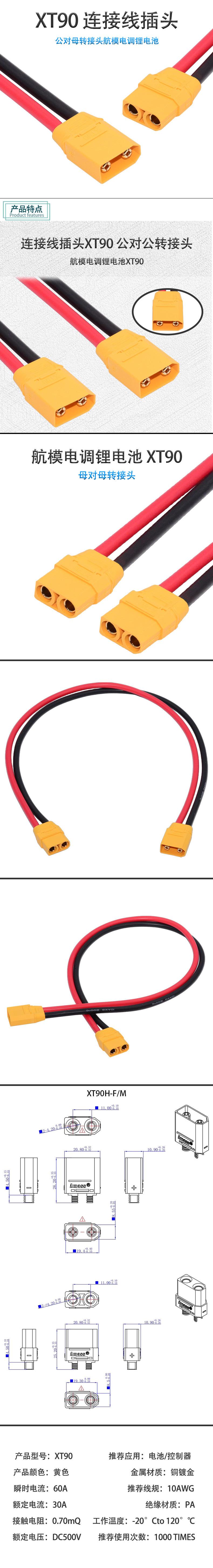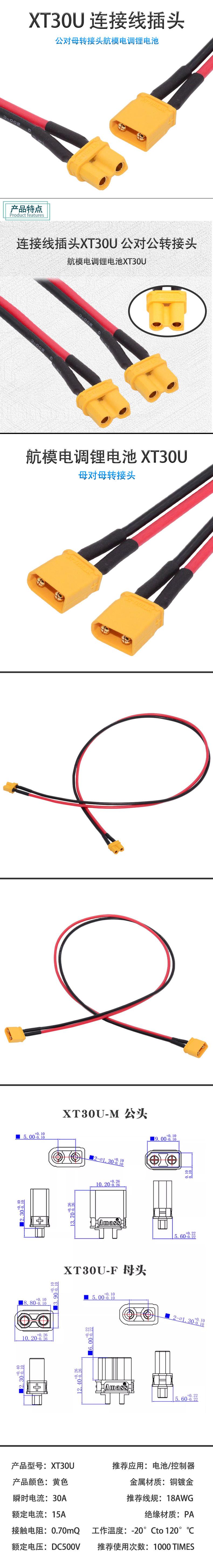 Xt30 Es Adecuado para Xt90 Xt60-F/M Xt60 con Enchufe para Avión Modelo Cableado Enchufe de Transferencia de Alta Corriente con Batería de Litio 30A