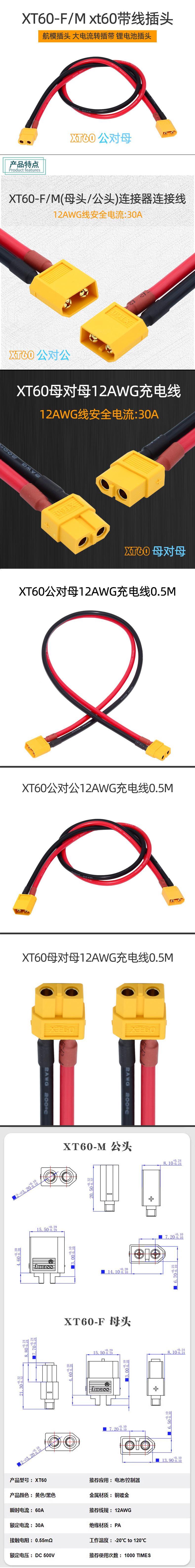 Yellow xt60 female to female, Yellow xt60 male to female, Yellow xt60 male to male, Yellow xt30 male to male, ...