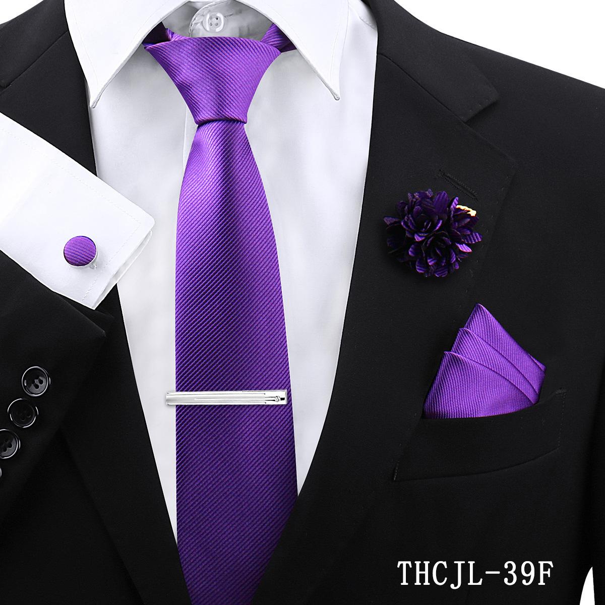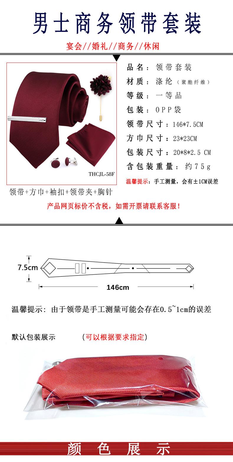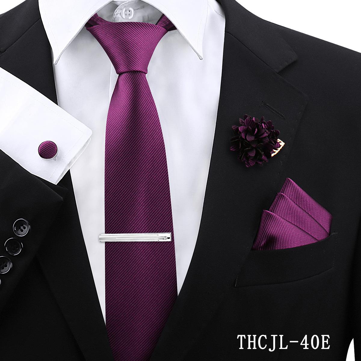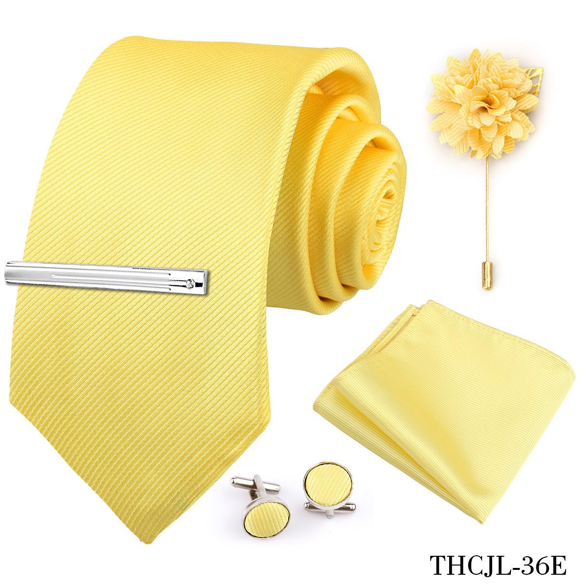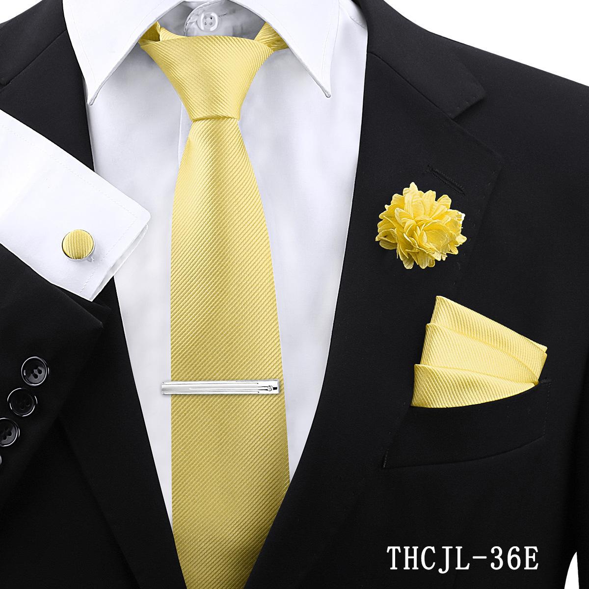Set de 5 piezas de corbata y pañuelo de bolsillo para hombre de color sólido, formal de negocios, color sólido, a rayas, hecho a mano, fábrica de Shengzhou, en stock