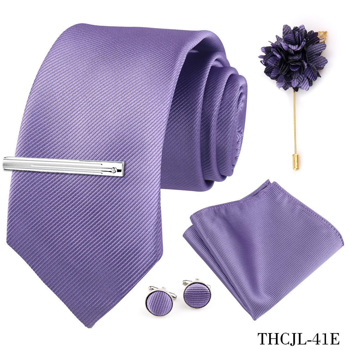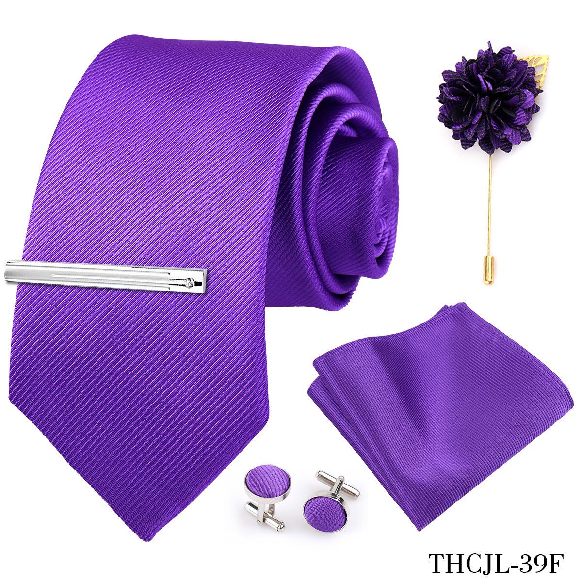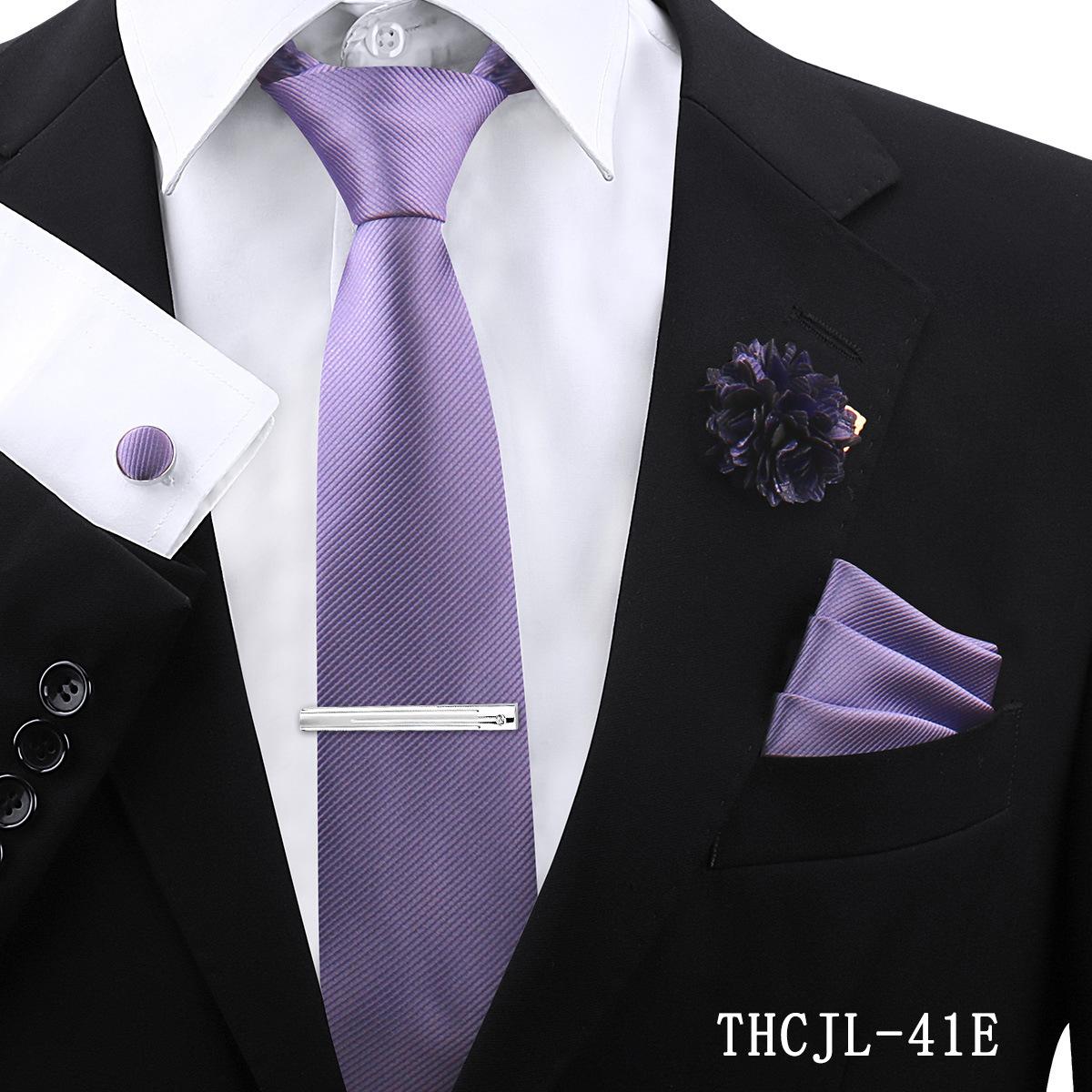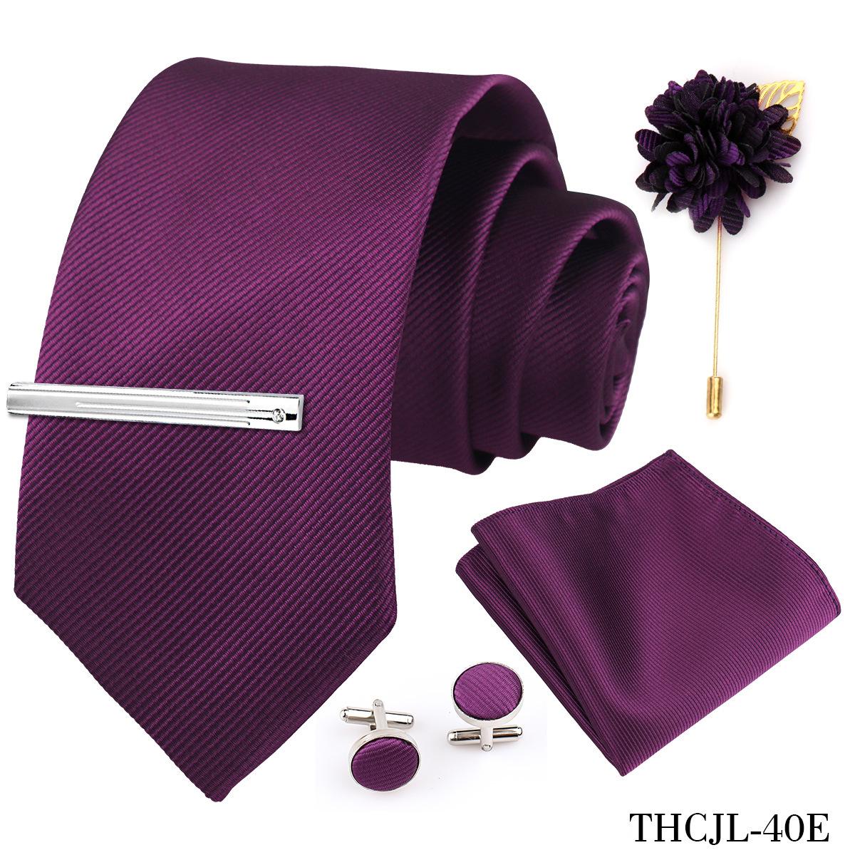 Set de 5 piezas de corbata y pañuelo de bolsillo para hombre de color sólido, formal de negocios, color sólido, a rayas, hecho a mano, fábrica de Shengzhou, en stock