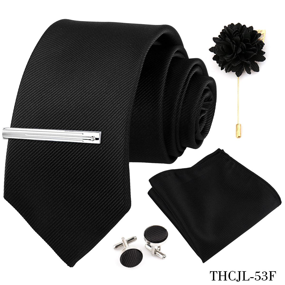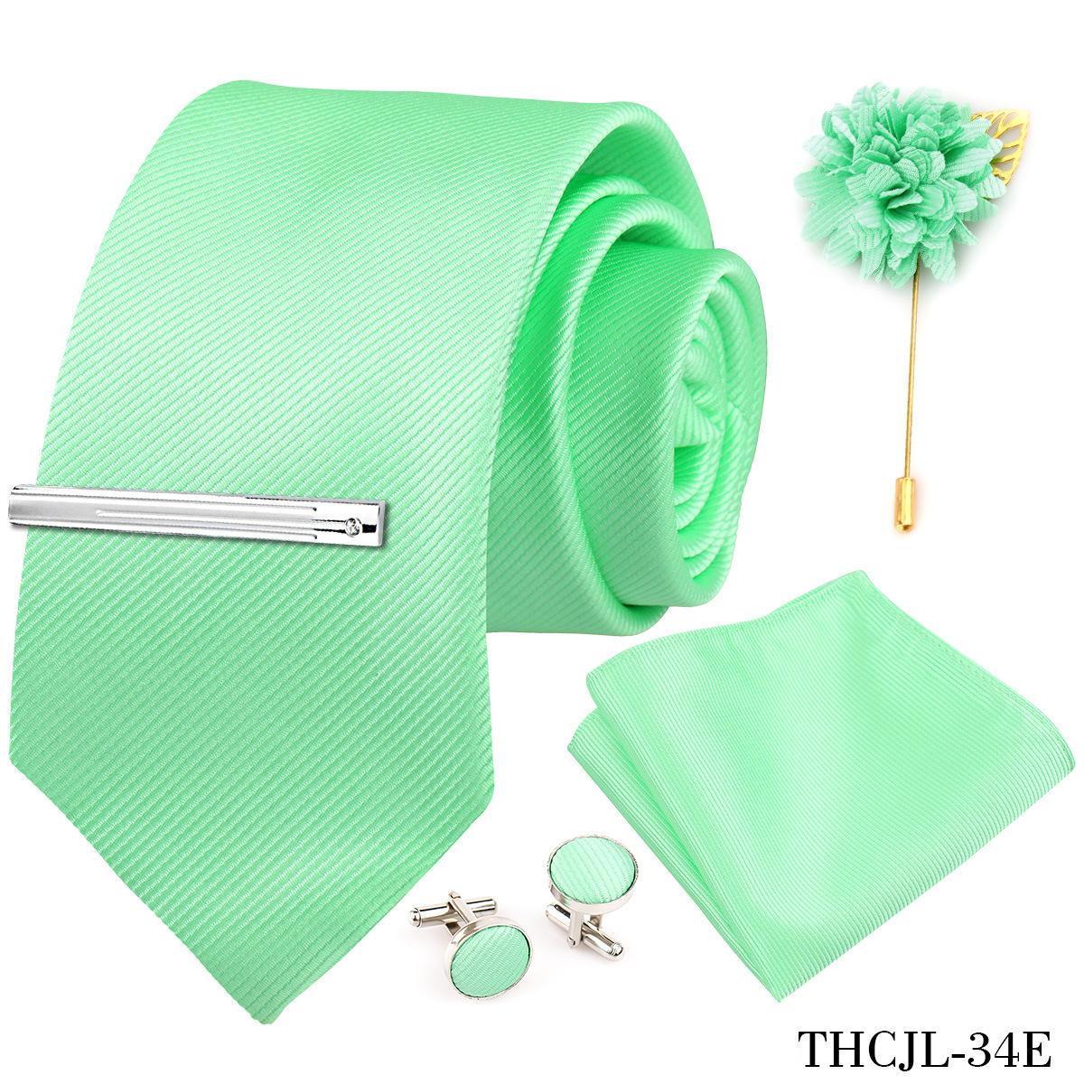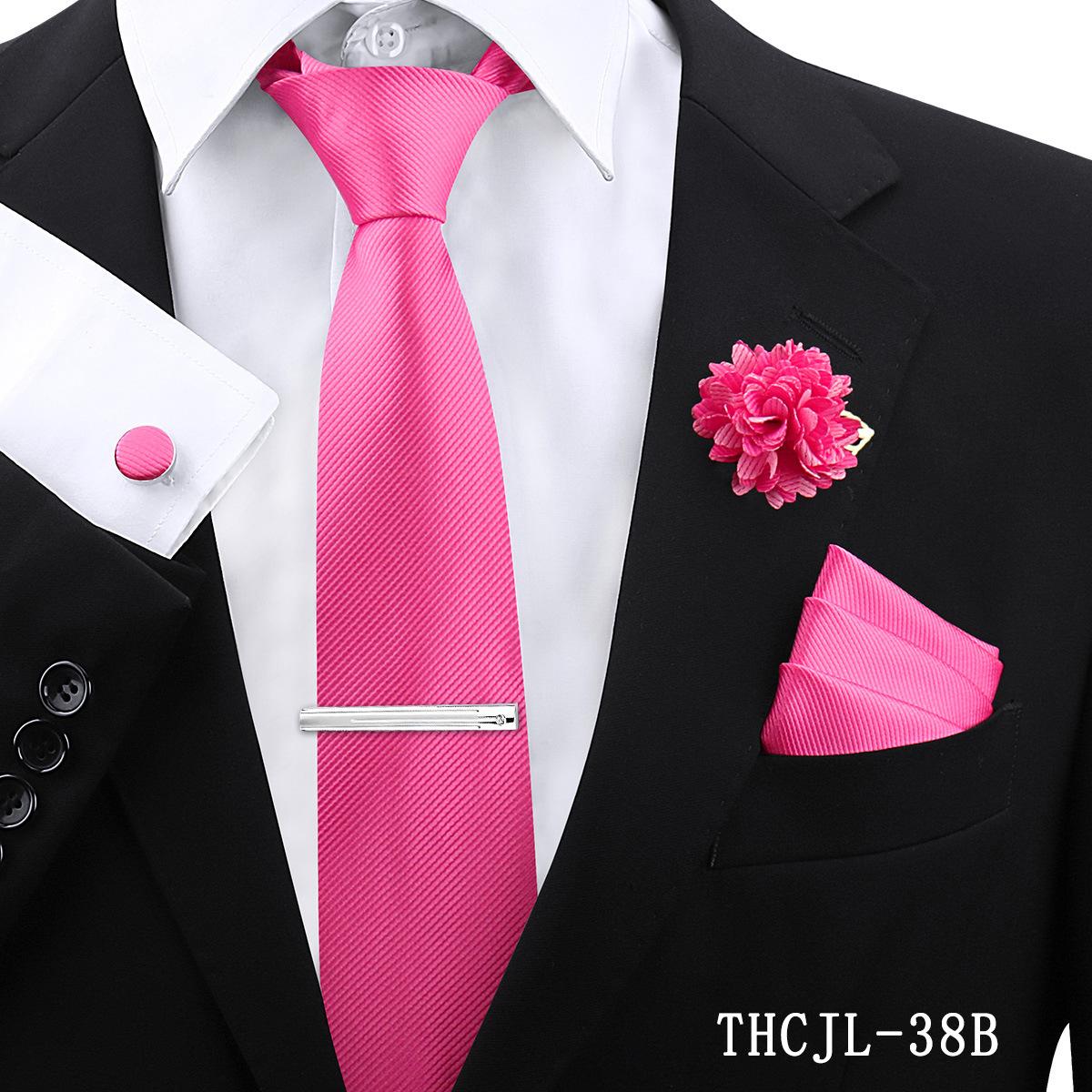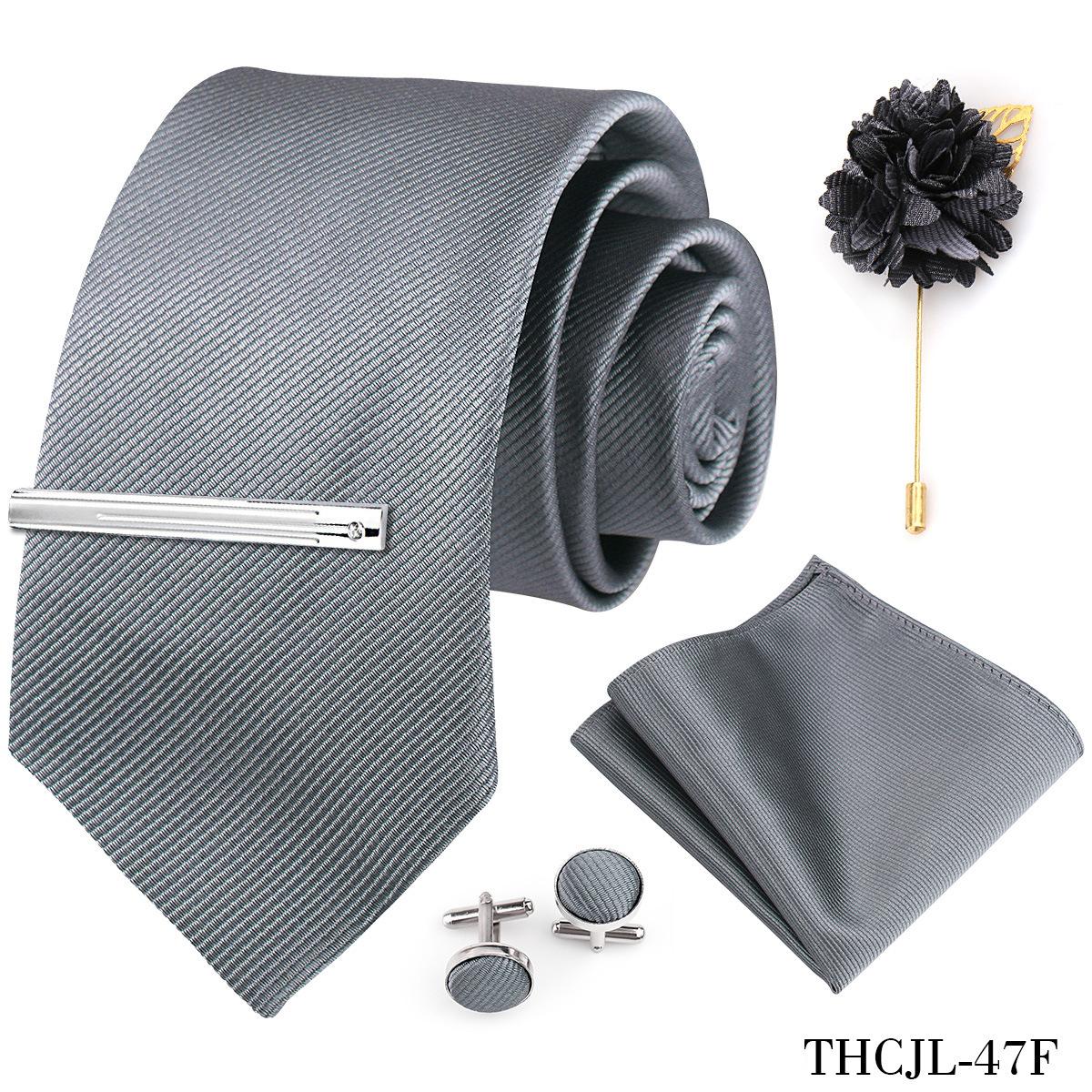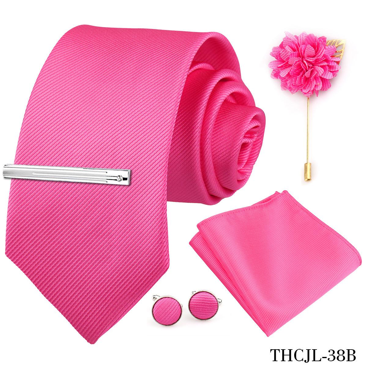 Set de 5 piezas de corbata y pañuelo de bolsillo para hombre de color sólido, formal de negocios, color sólido, a rayas, hecho a mano, fábrica de Shengzhou, en stock