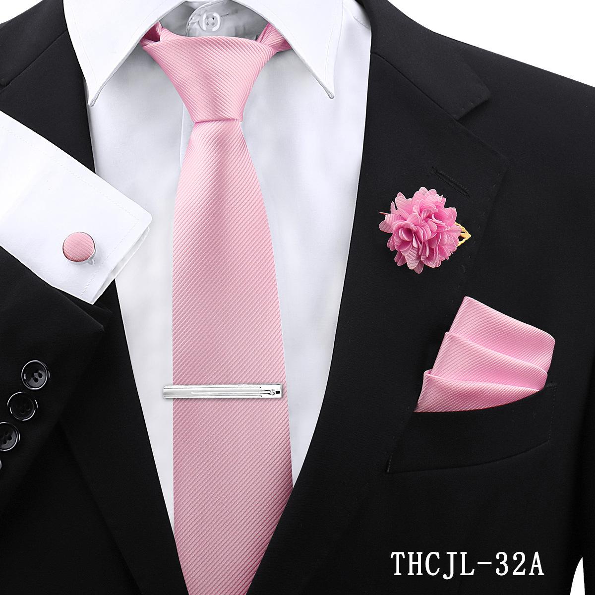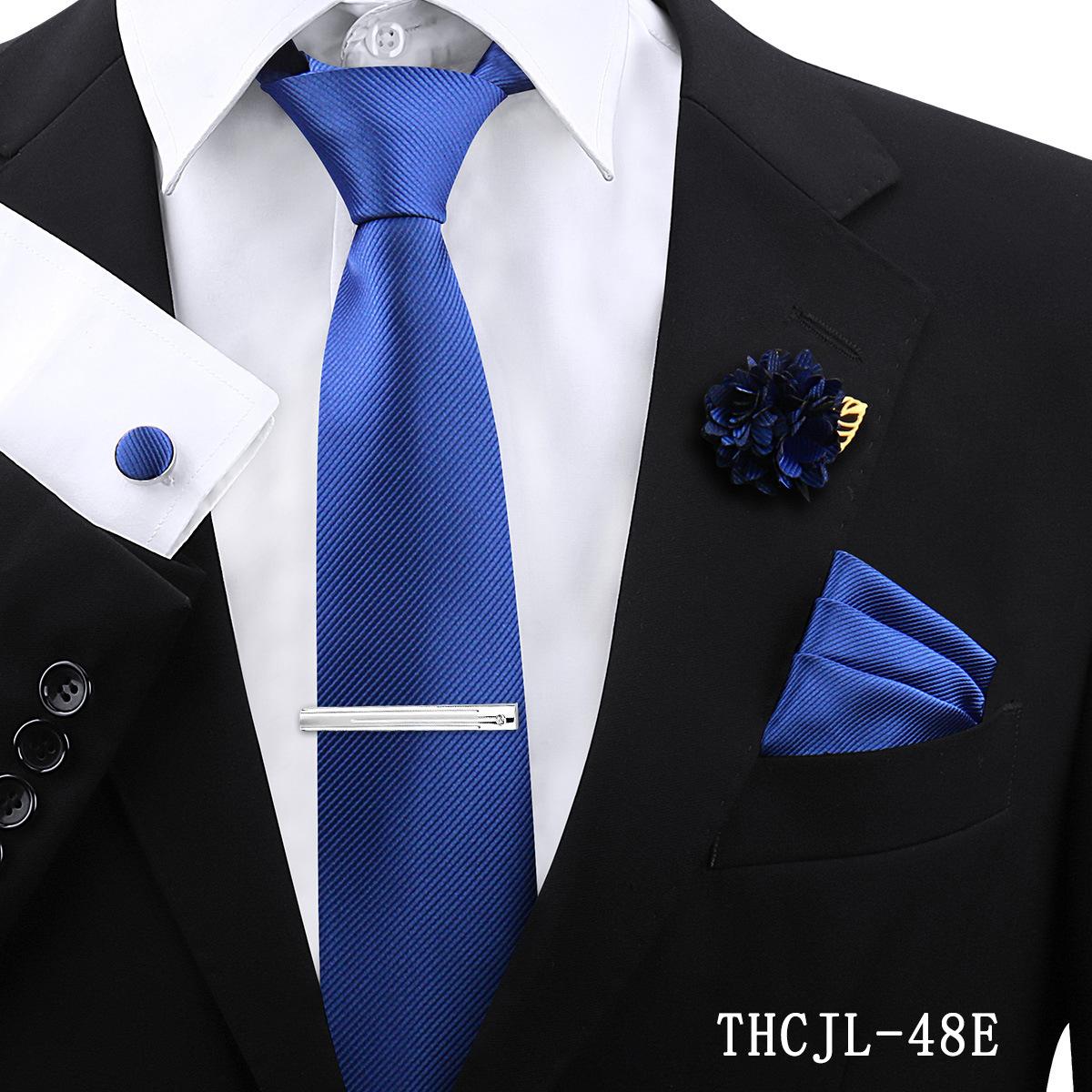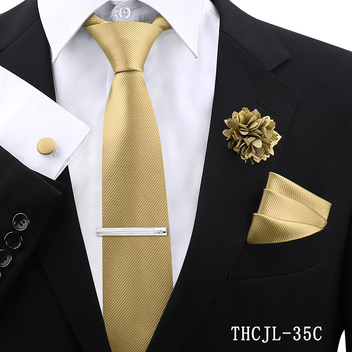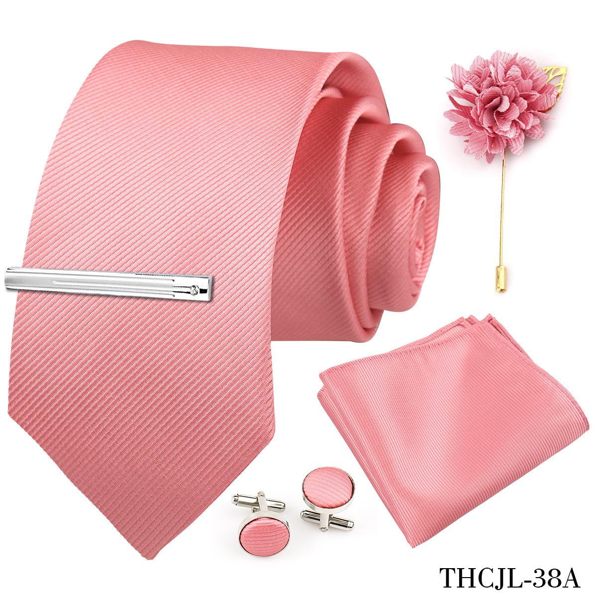 Set de 5 piezas de corbata y pañuelo de bolsillo para hombre de color sólido, formal de negocios, color sólido, a rayas, hecho a mano, fábrica de Shengzhou, en stock