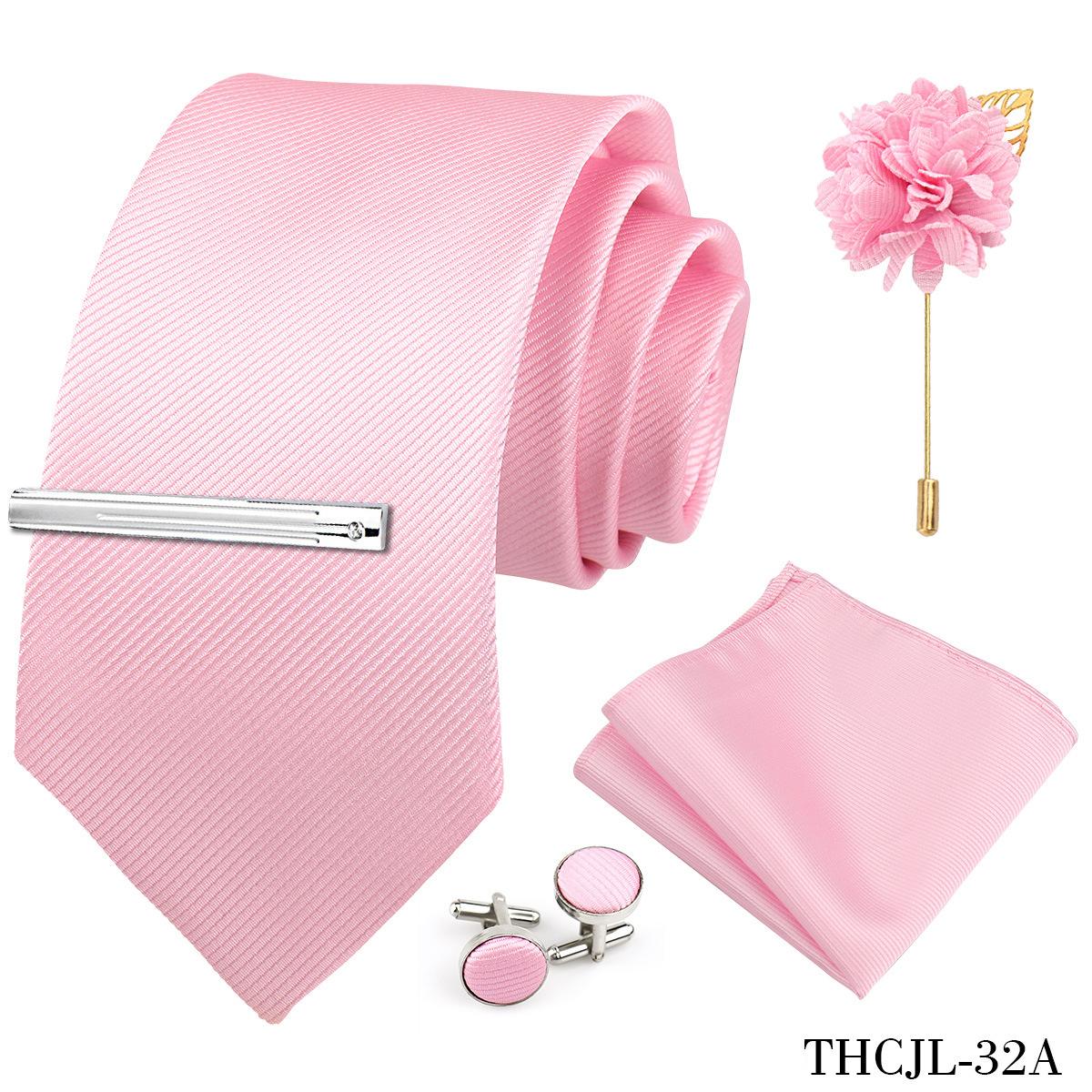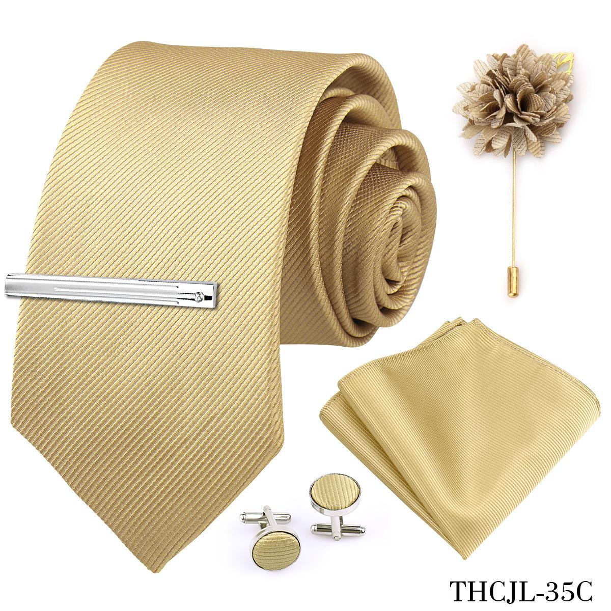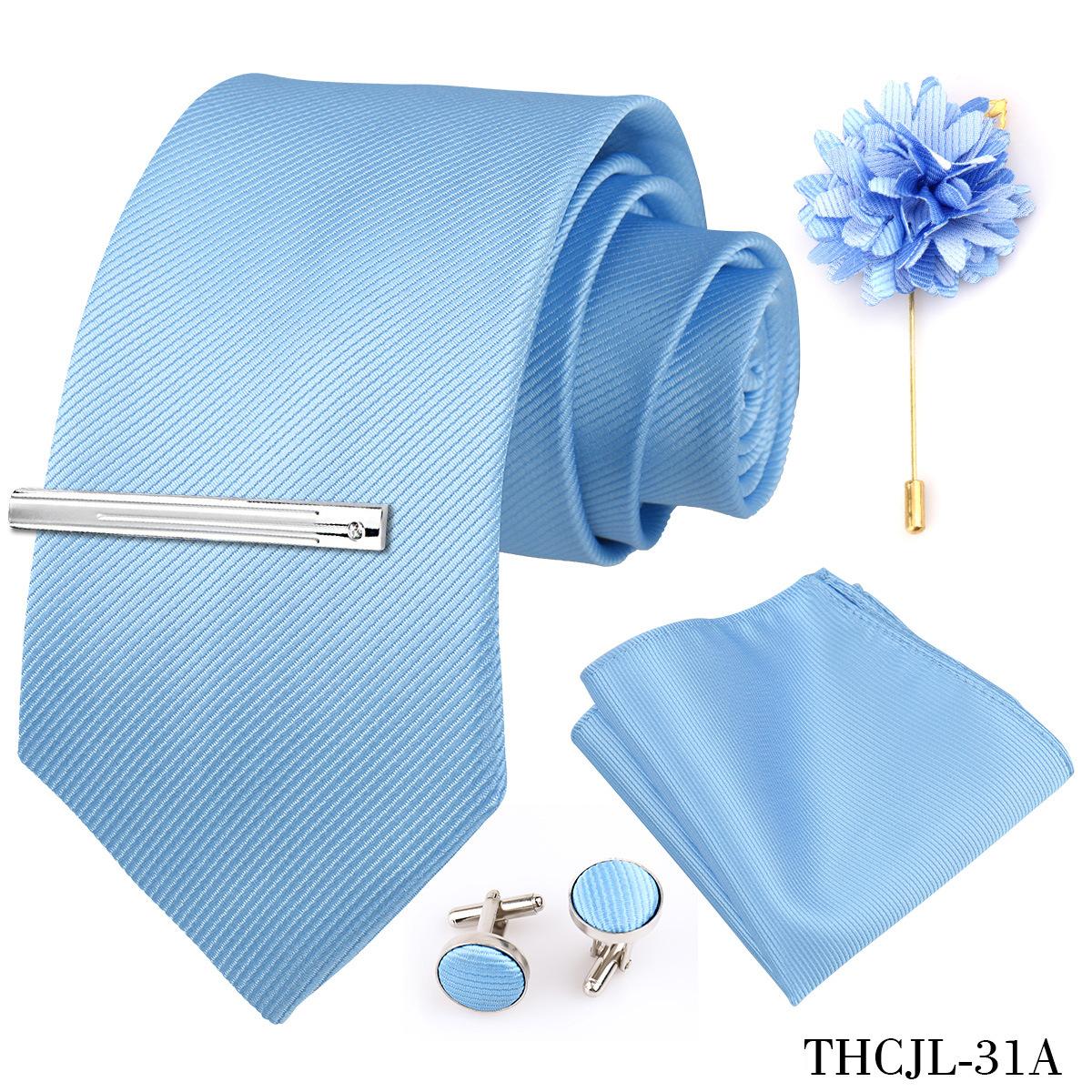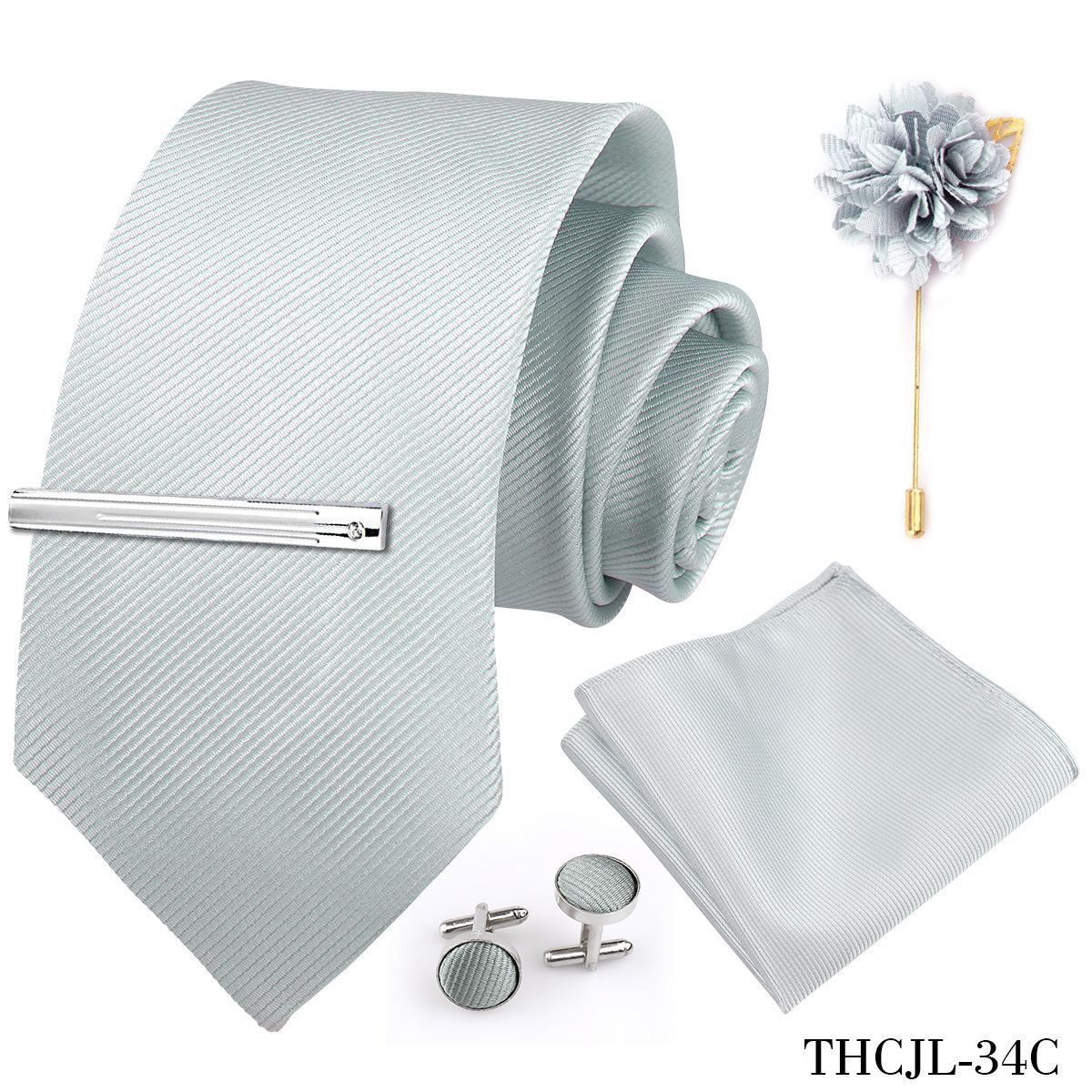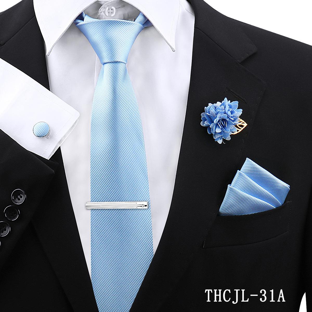 Set de 5 piezas de corbata y pañuelo de bolsillo para hombre de color sólido, formal de negocios, color sólido, a rayas, hecho a mano, fábrica de Shengzhou, en stock