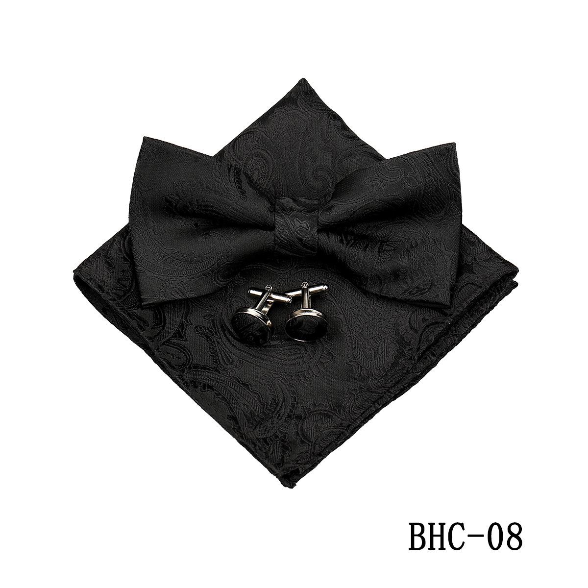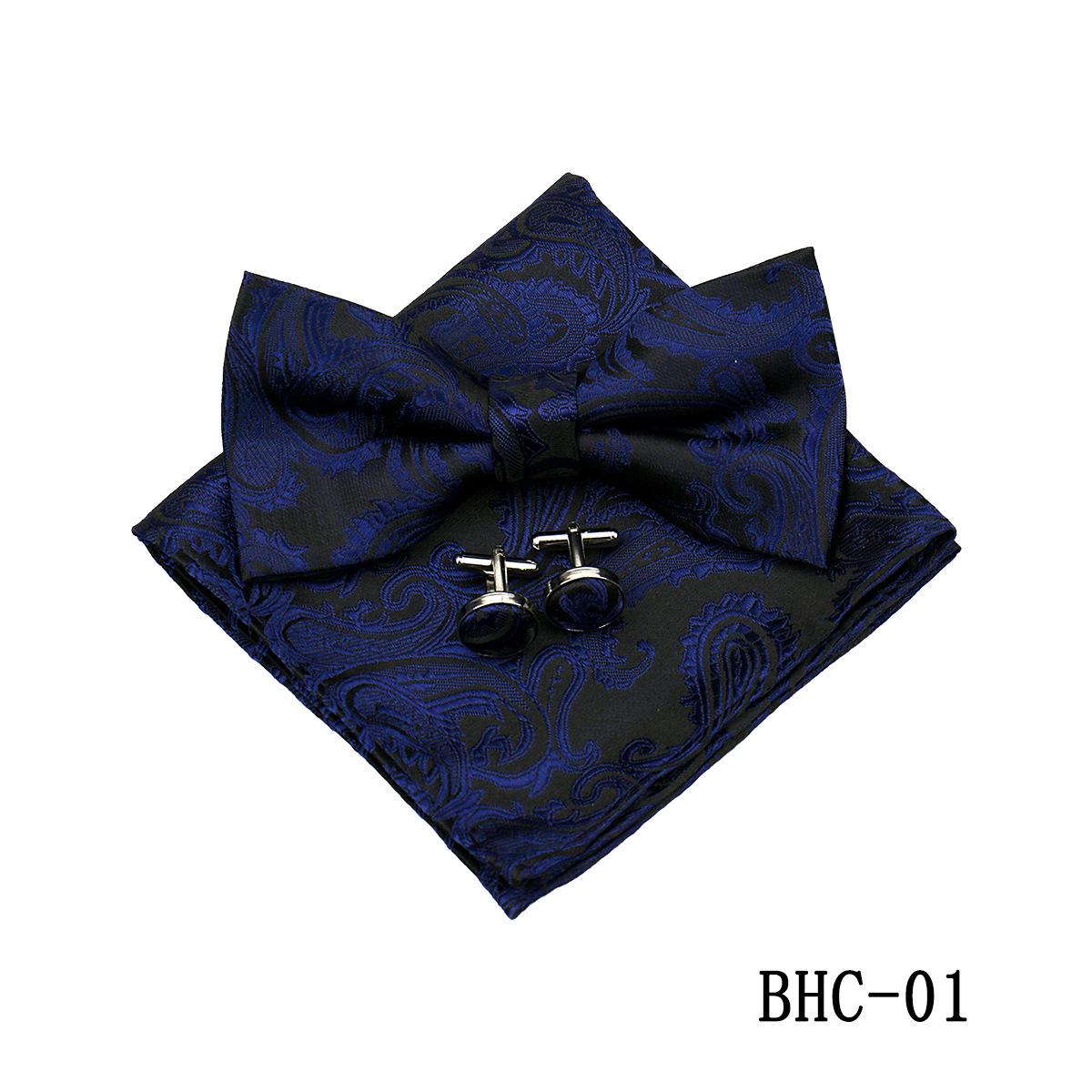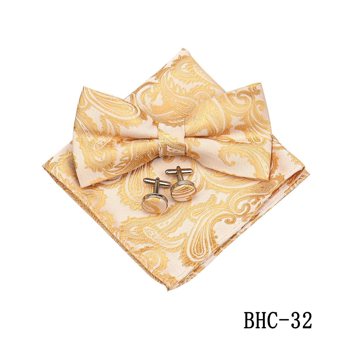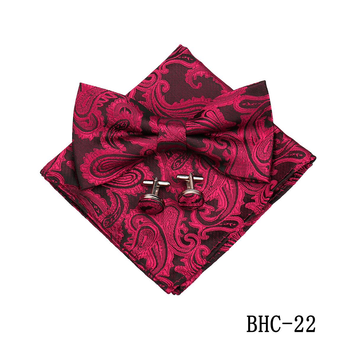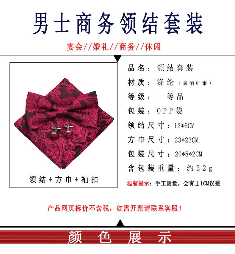 Traje de 3 piezas para hombre con pajarita paisley, pañuelo de bolsillo cuadrado y mancuernillas, estilo coreano para negocios y banquetes, pajarita jacquard de poliéster lista para entrega