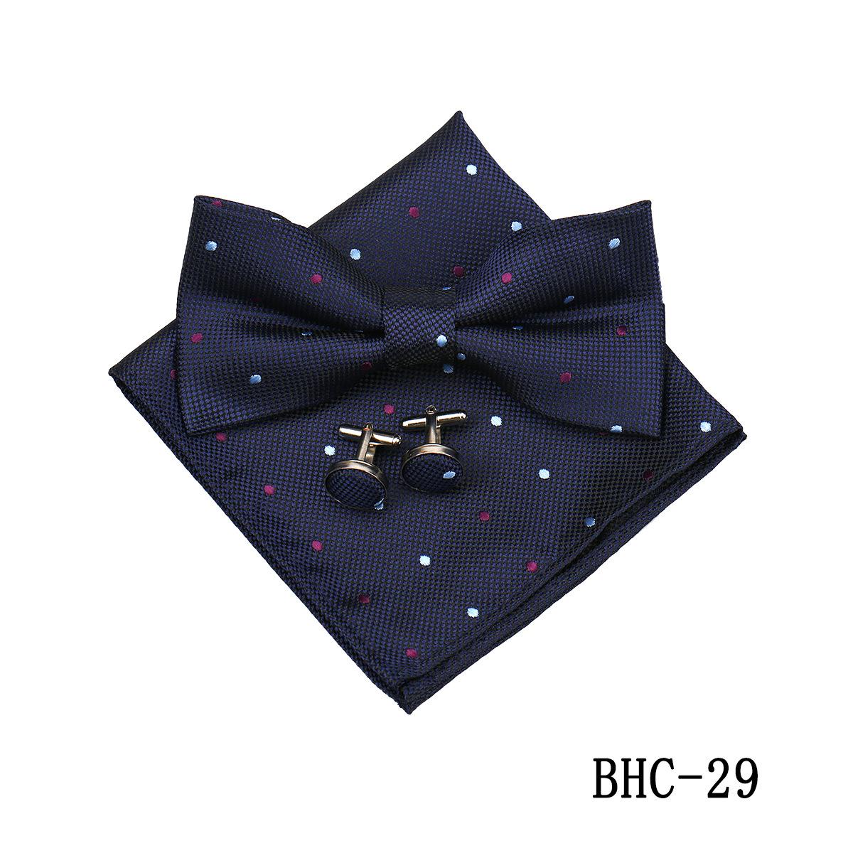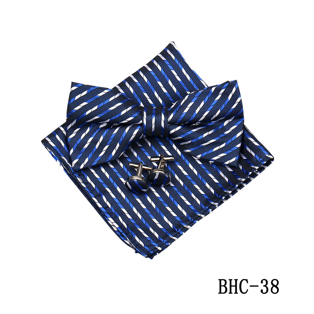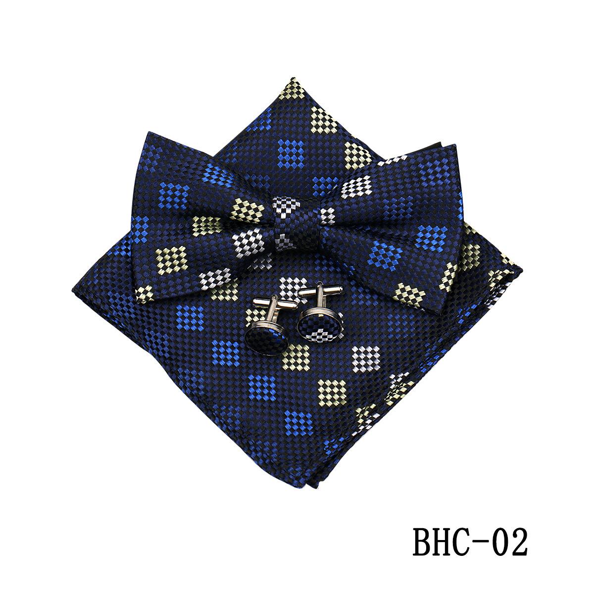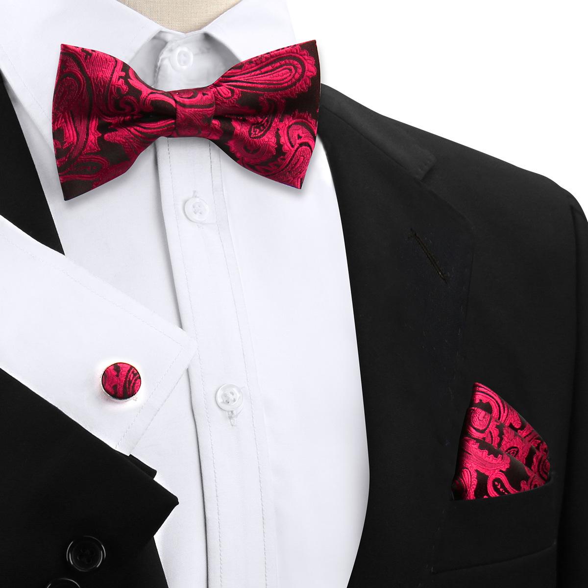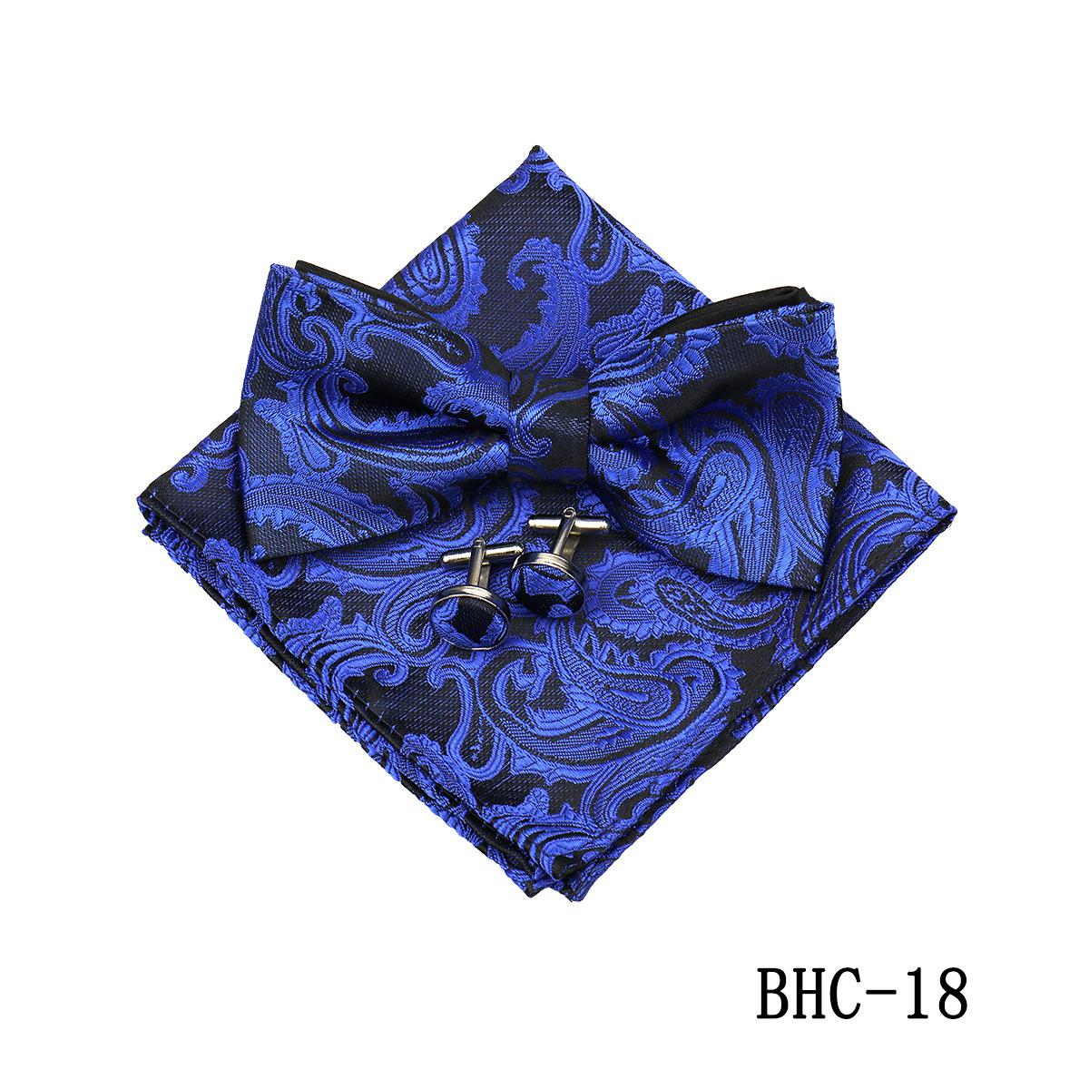 Traje de 3 piezas para hombre con pajarita paisley, pañuelo de bolsillo cuadrado y mancuernillas, estilo coreano para negocios y banquetes, pajarita jacquard de poliéster lista para entrega