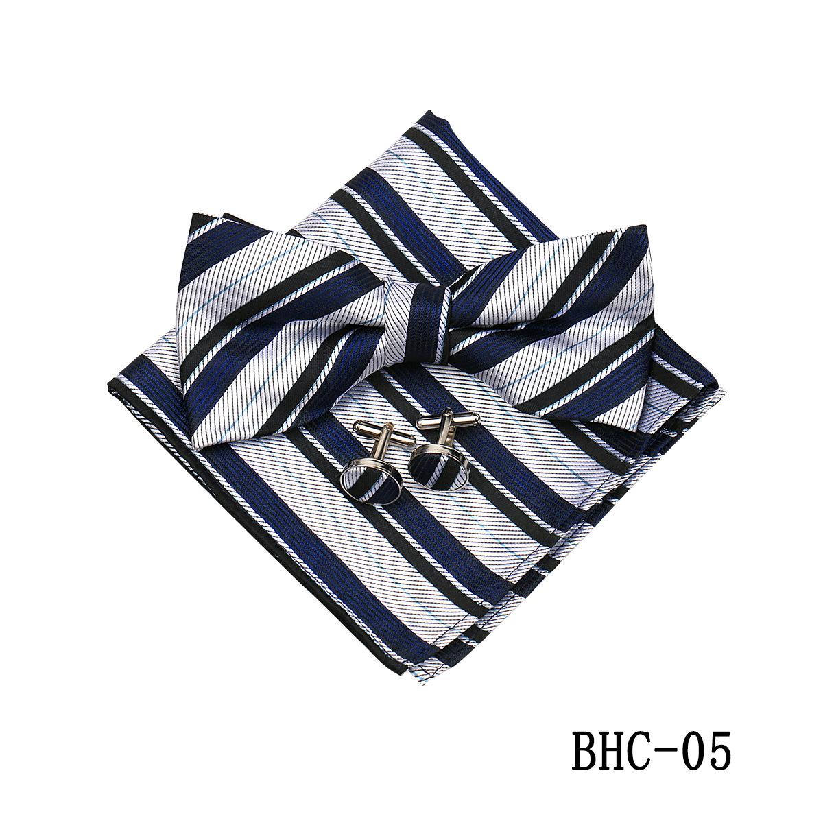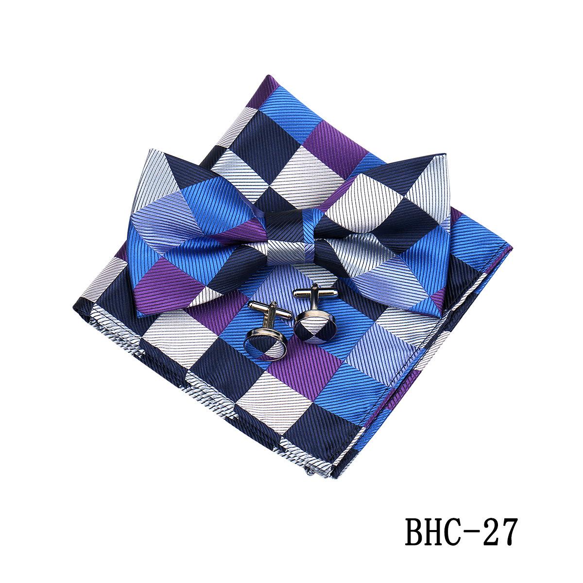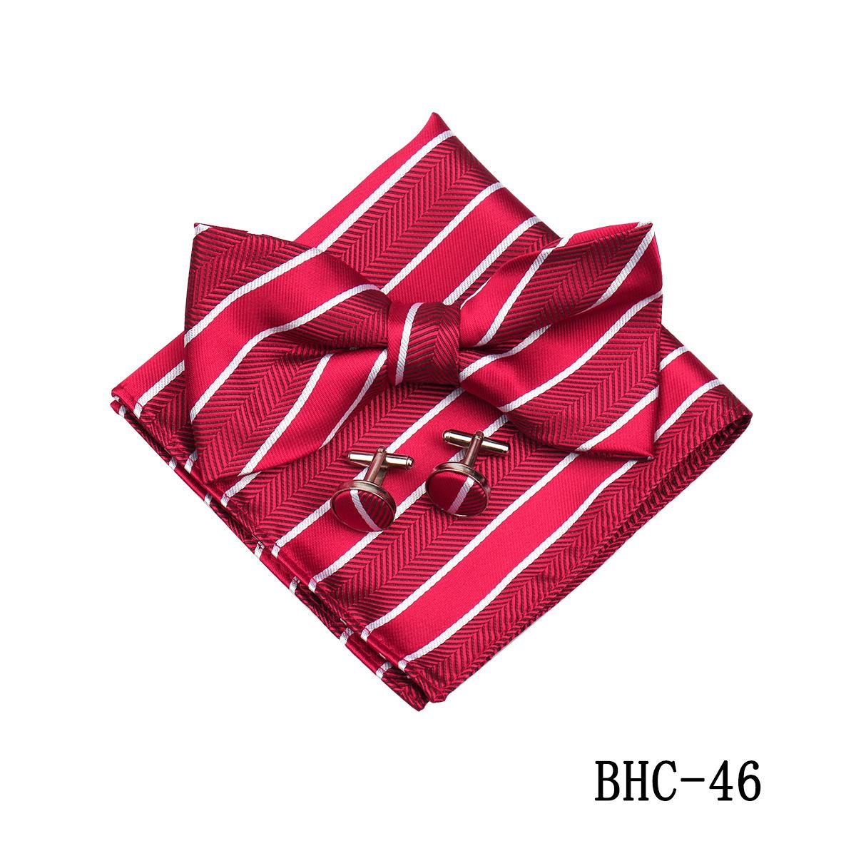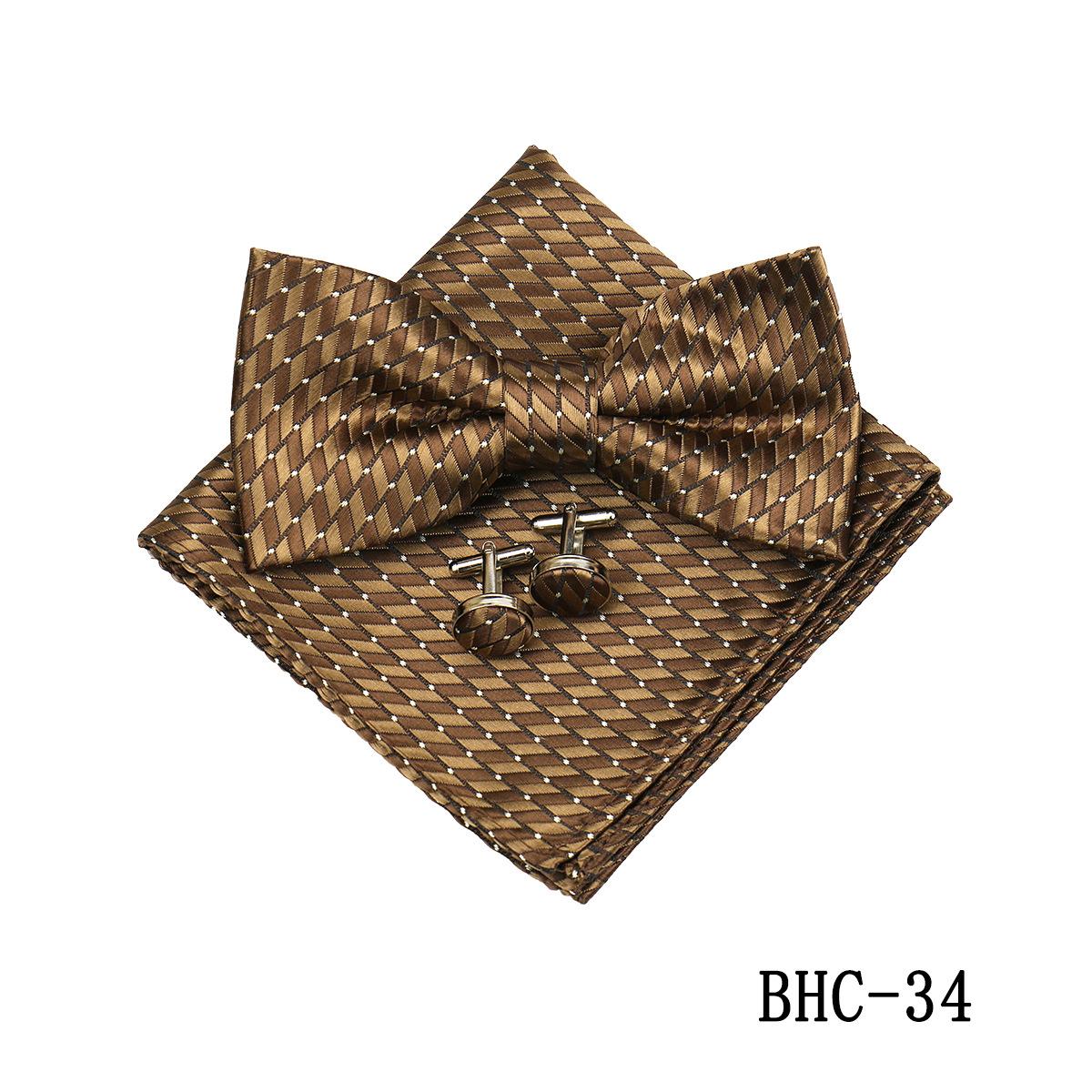 Traje de 3 piezas para hombre con pajarita paisley, pañuelo de bolsillo cuadrado y mancuernillas, estilo coreano para negocios y banquetes, pajarita jacquard de poliéster lista para entrega