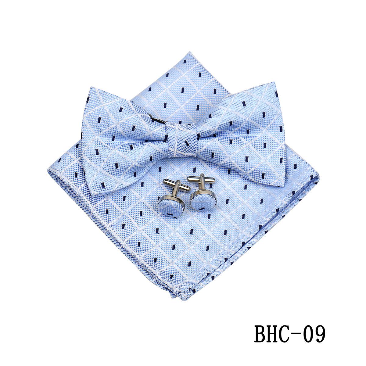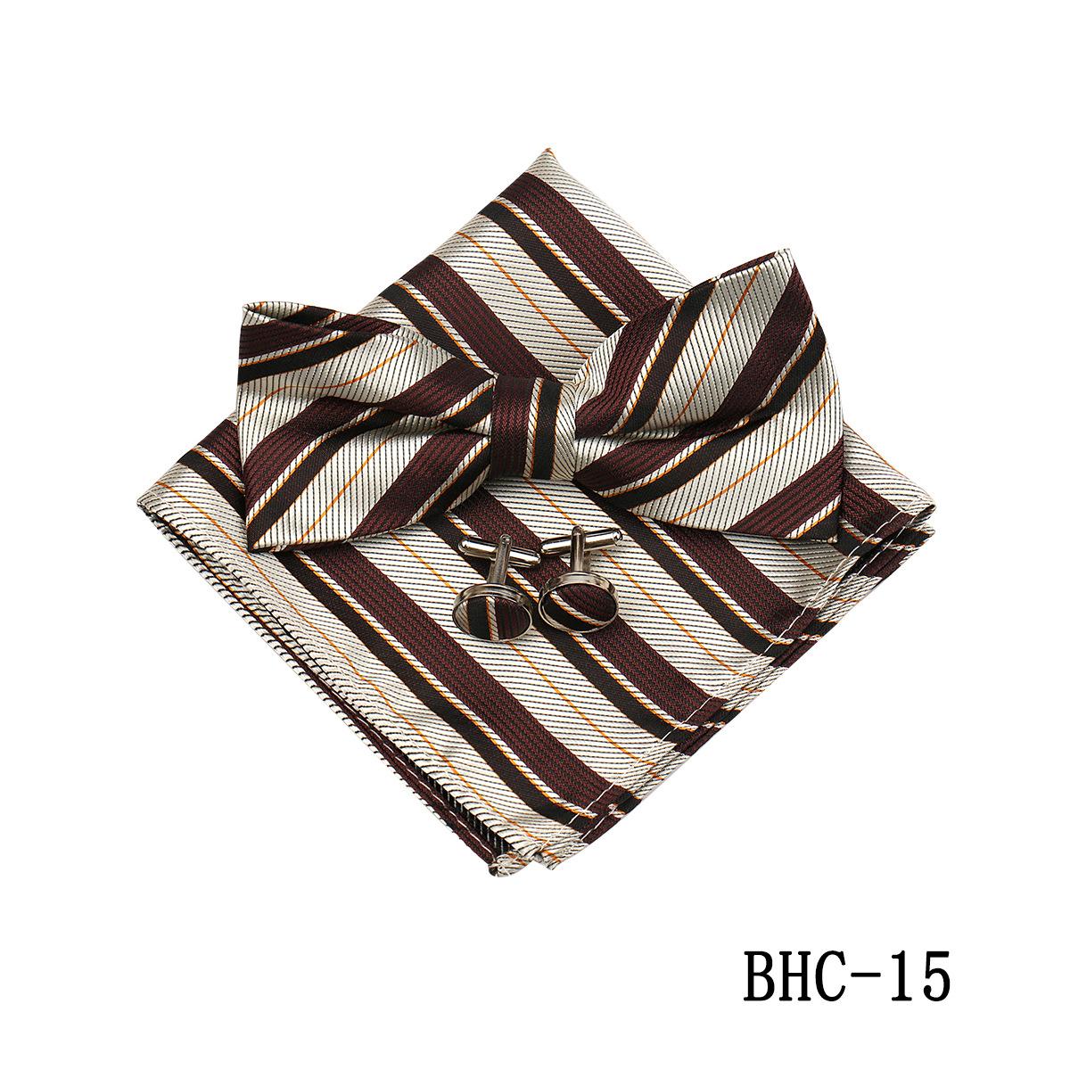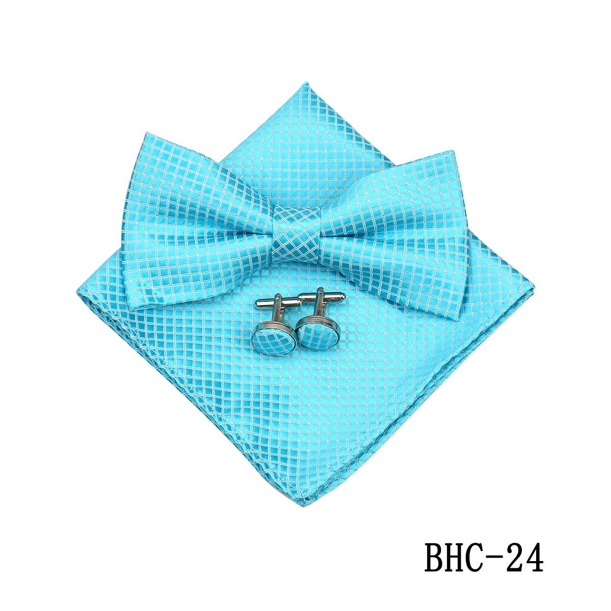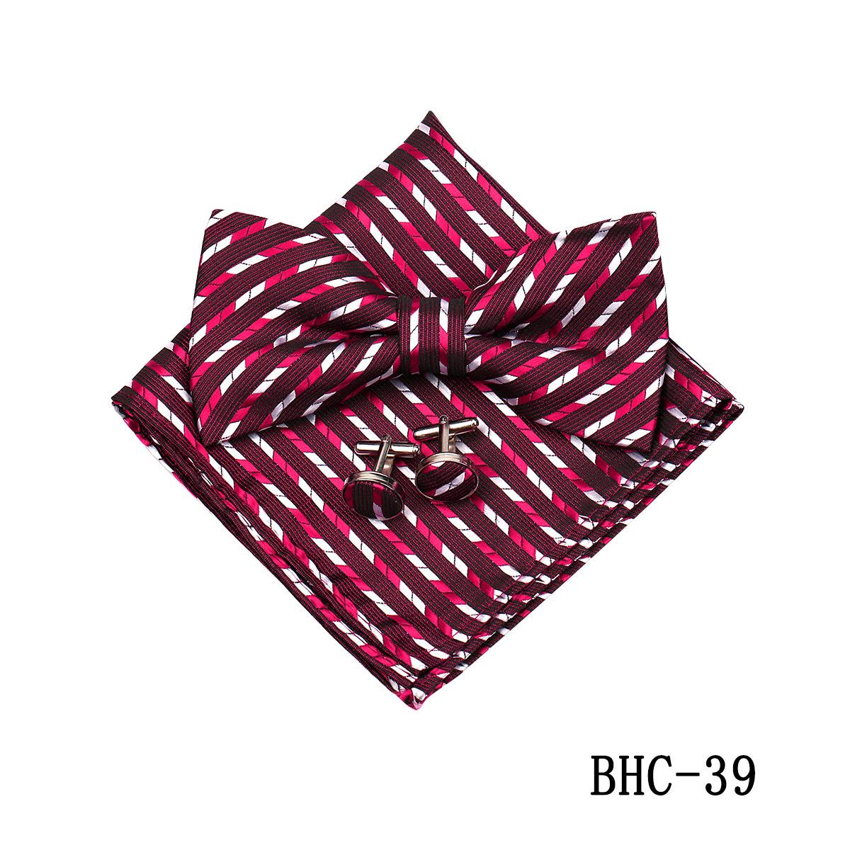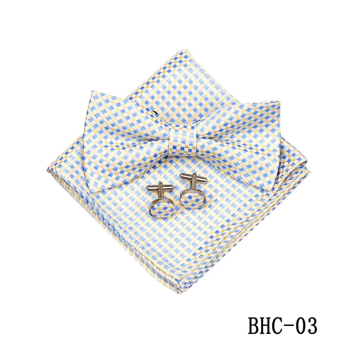 Traje de 3 piezas para hombre con pajarita paisley, pañuelo de bolsillo cuadrado y mancuernillas, estilo coreano para negocios y banquetes, pajarita jacquard de poliéster lista para entrega