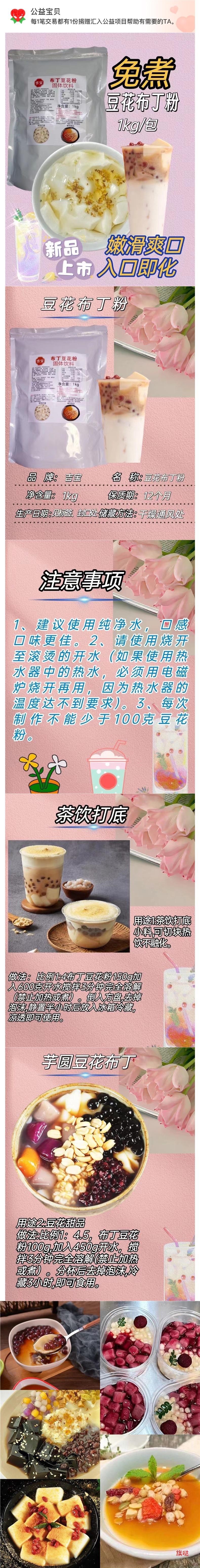Polvo para Pudín Douhua Keppel Sin Hervir Té de Caramelo Yogurt Pesca 1kg Postre Hierba Tostada Materia Prima Té de Burbujas