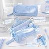 Estuche de lápices transparente de gran capacidad con 9 compartimentos, azul claro, almacenamiento organizado de 9 capas Todo el material de papelería cabe en una bolsa, diseño abatible para fácil acceso, material lavable