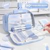 Estuche de lápices transparente de gran capacidad con 9 compartimentos, azul claro, BD-2025092301-LB